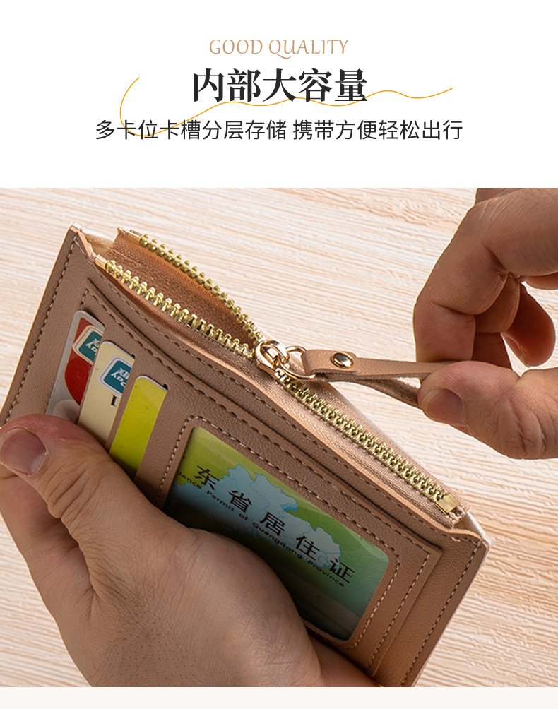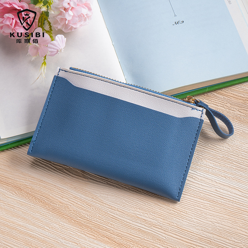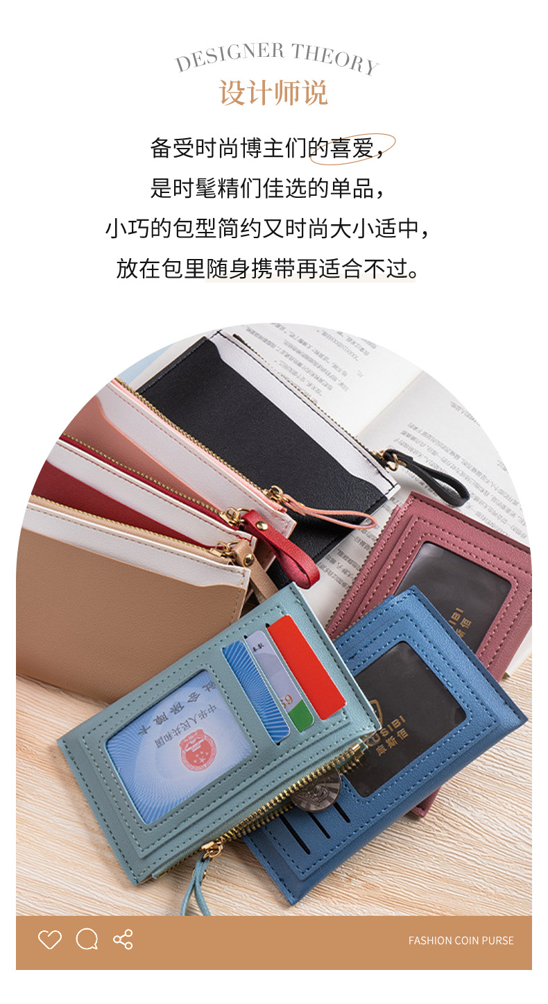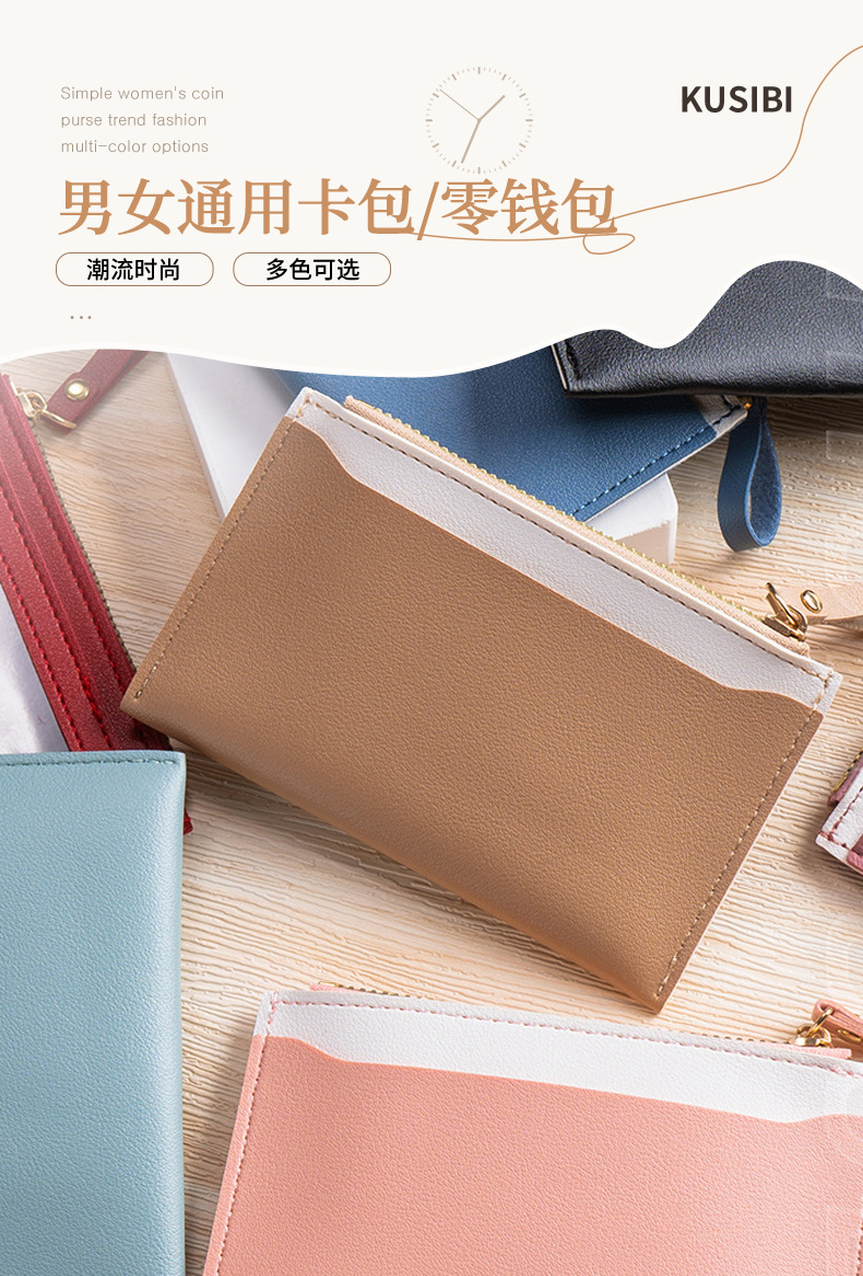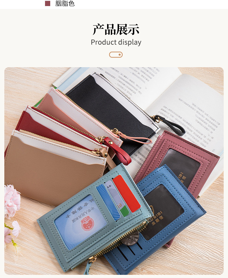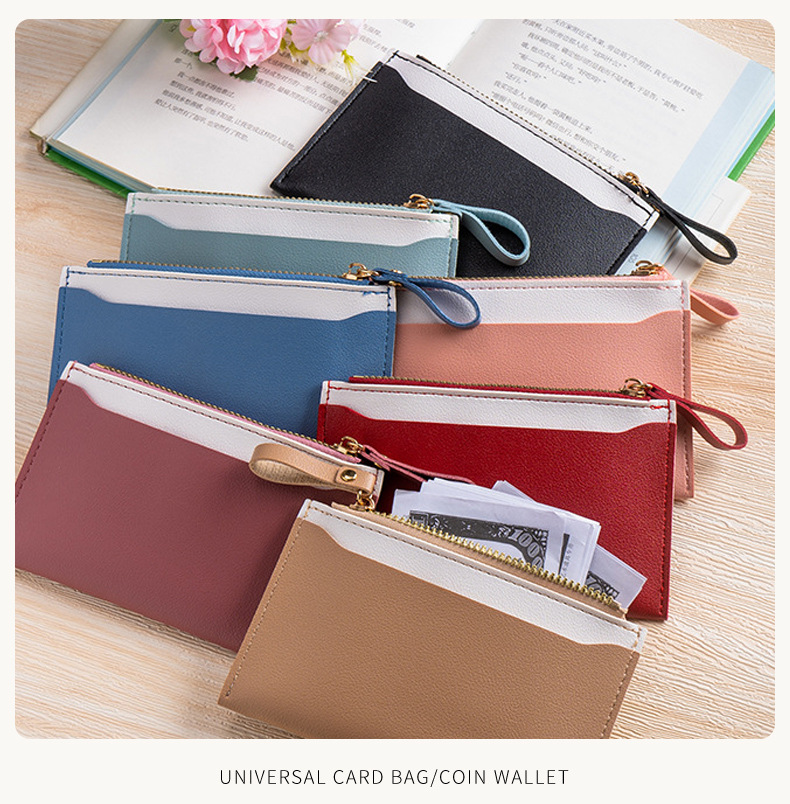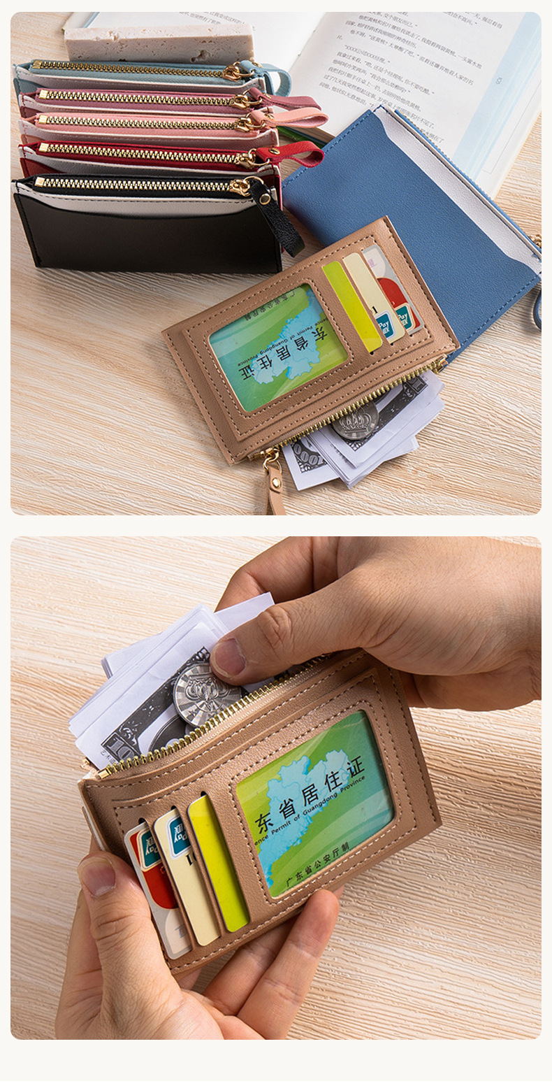 작은 신선한 지갑 카드 가방 여성 지퍼 동전 지갑 2024 새로운 재고 도매 PU 가죽 스티칭 대비 색상 ID 카드스토어 가기