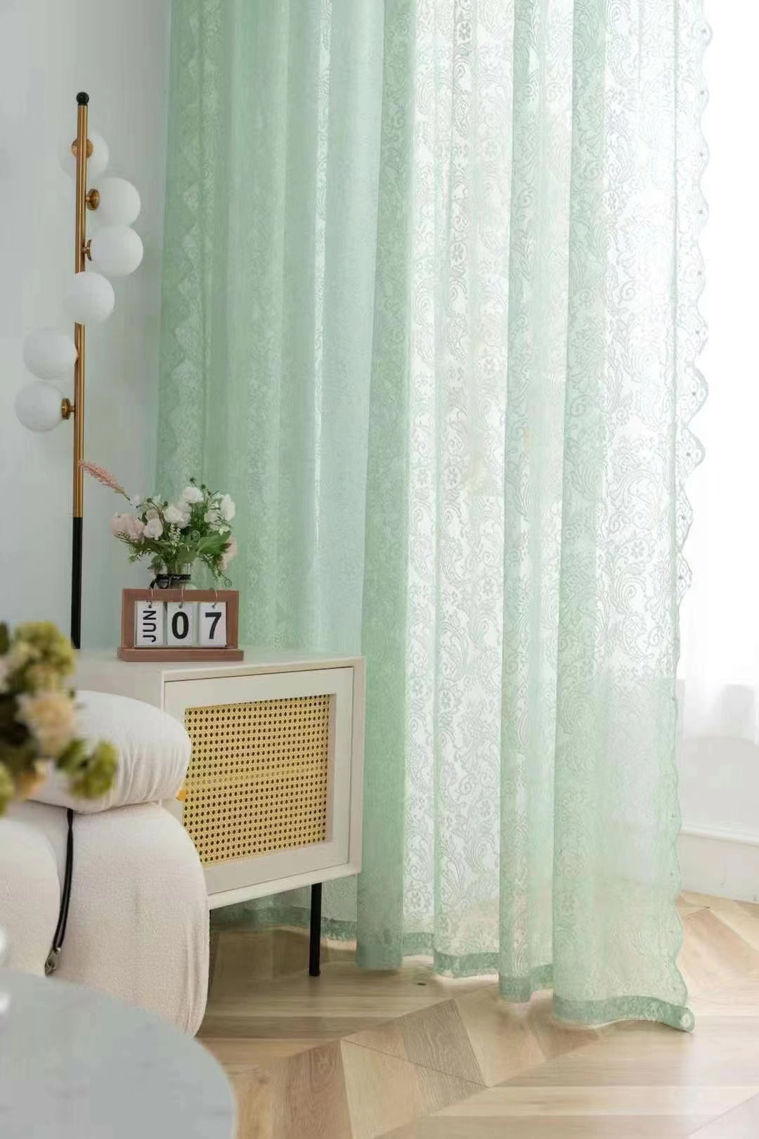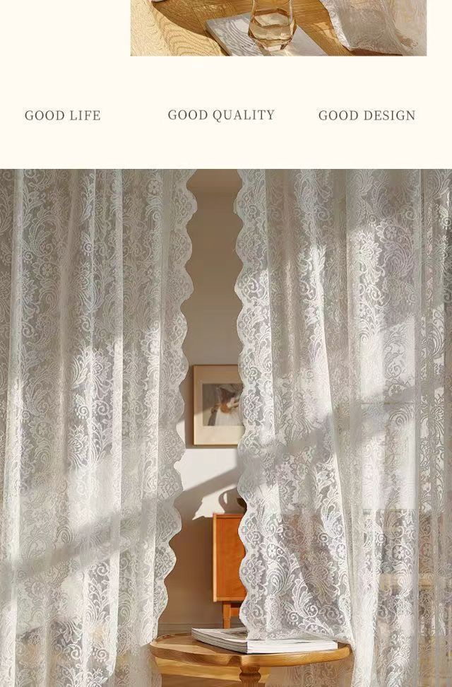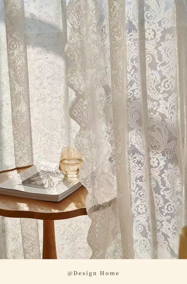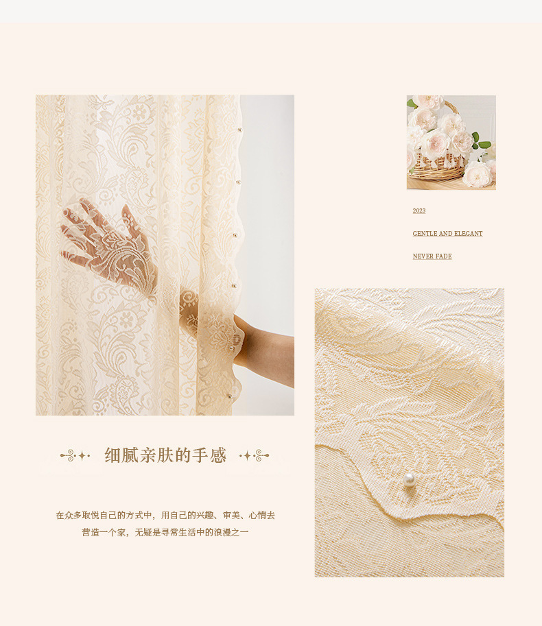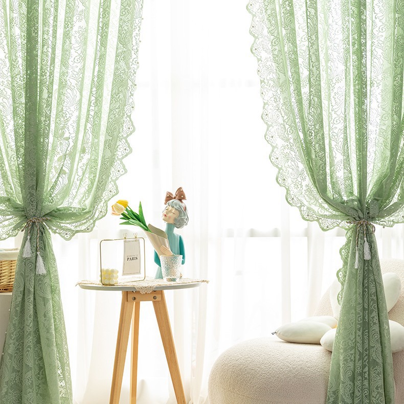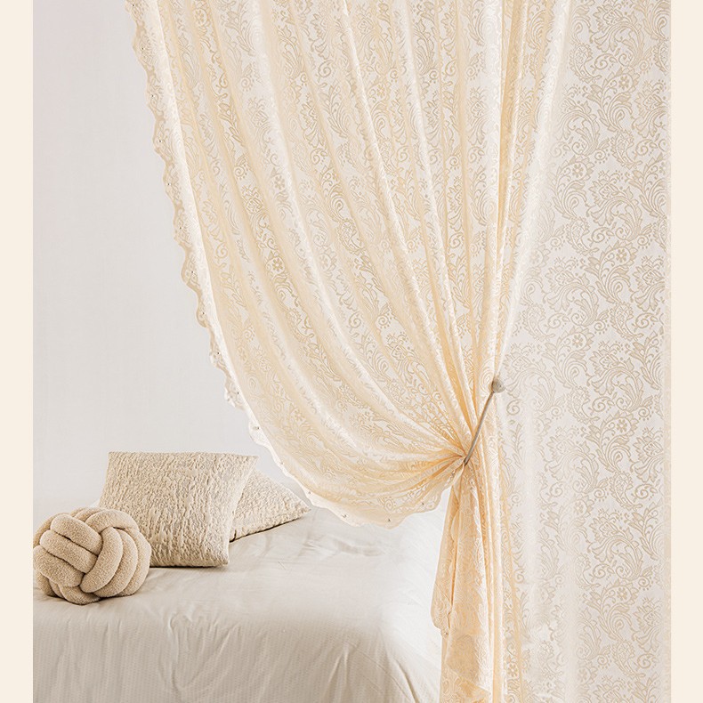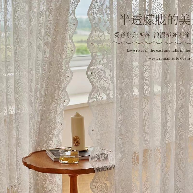 프렌치 레트로 워프 니트 레이스 구슬 거즈 커튼 거실 침실 베이 창 파티션 물결 모양 레이스 한국식 목회 커튼