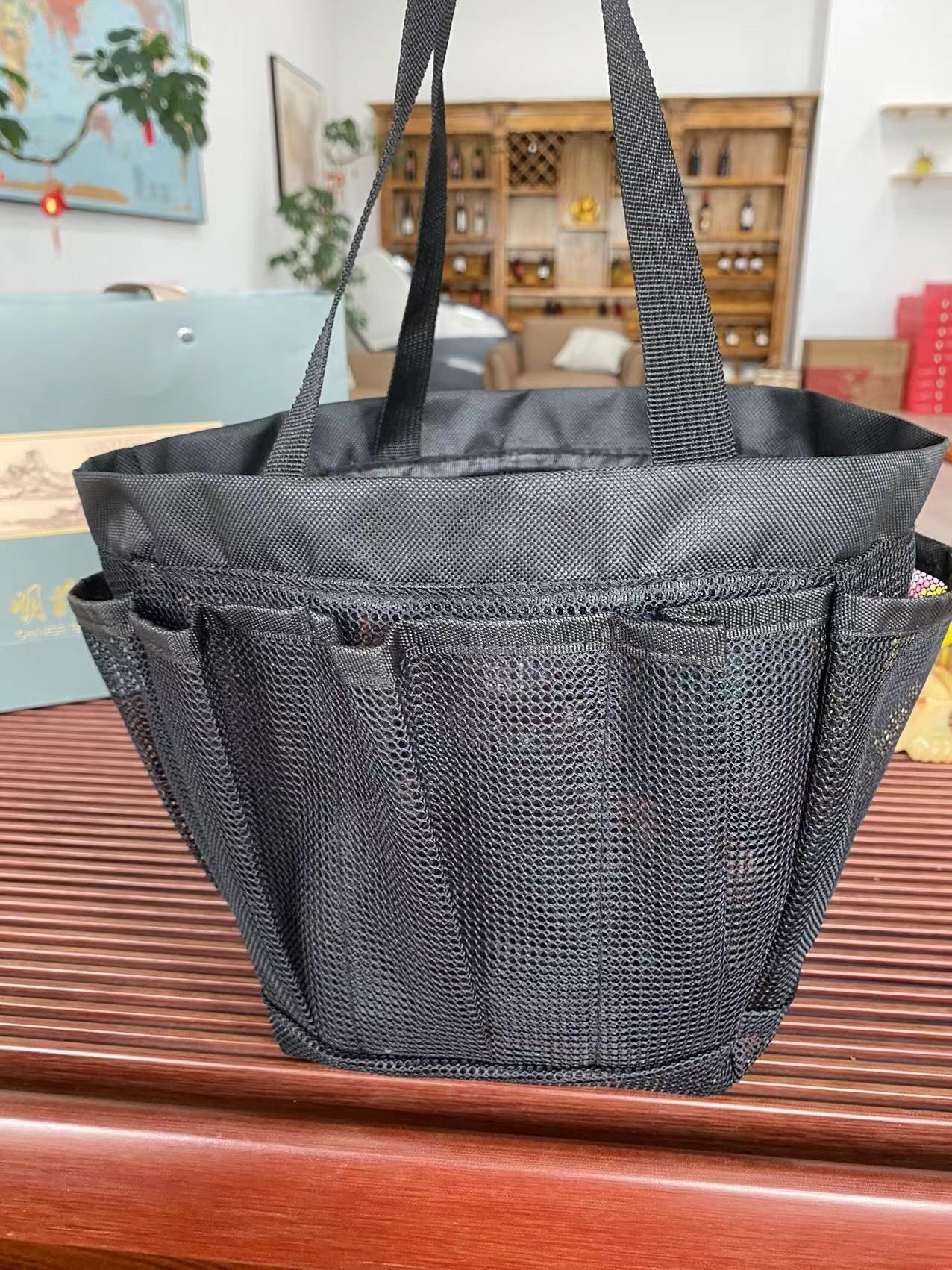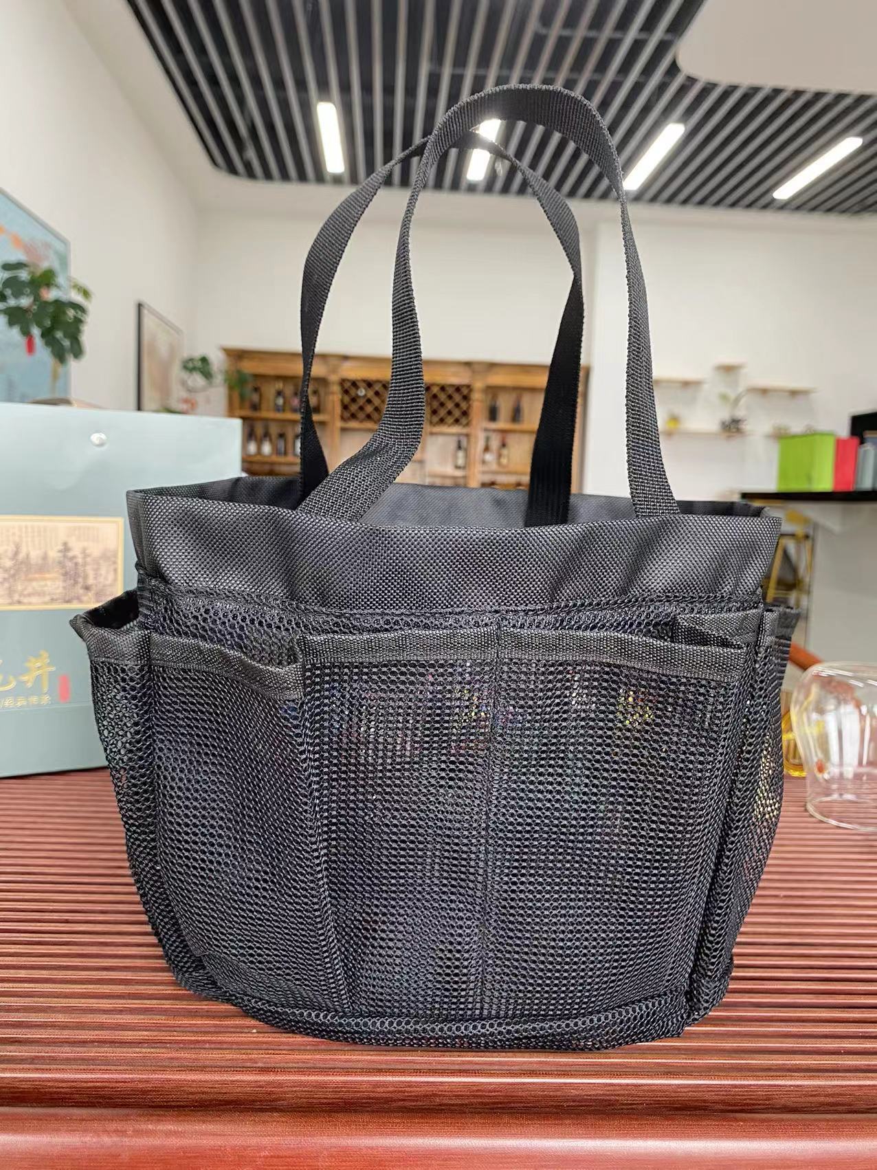 휴대용 메쉬 비치 백 메이크업 여행 보관 세척 가방 메쉬 휴대용 수영 목욕 가방 비치 백스토어 가기