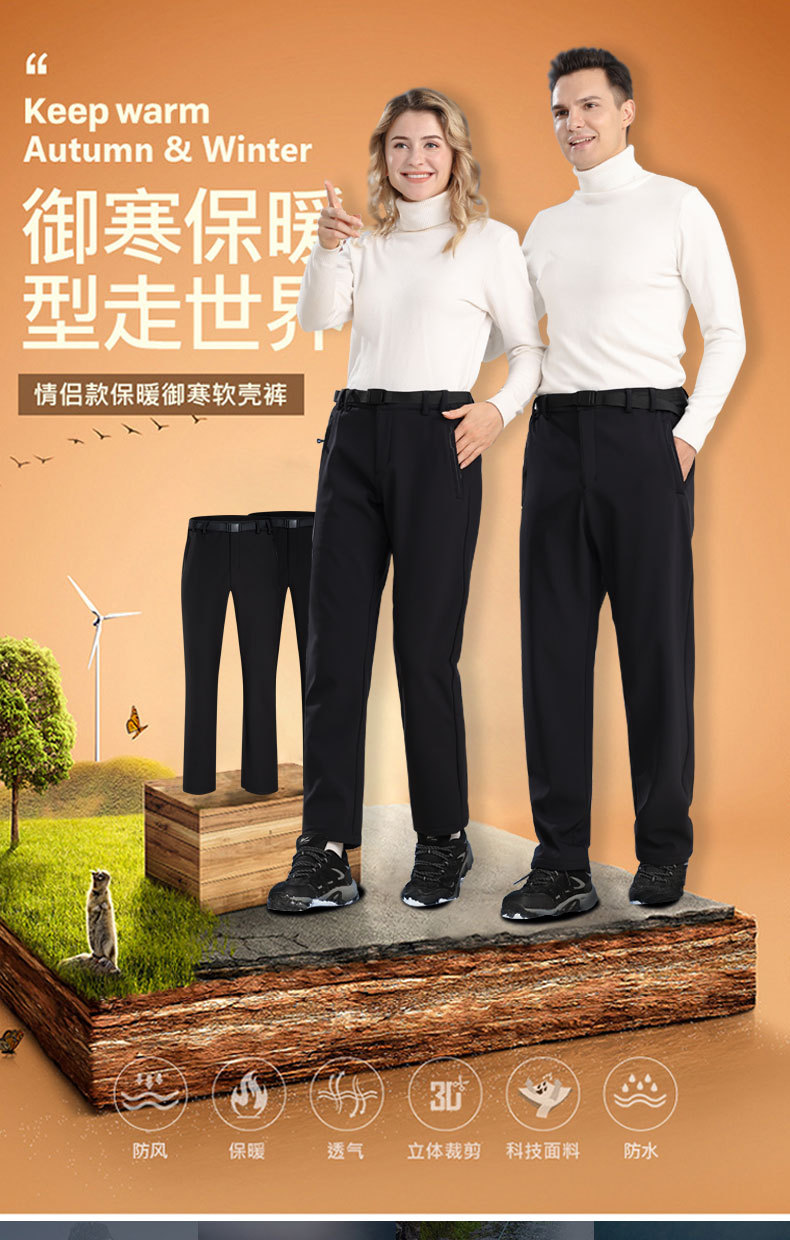 신형 남녀공용 소프트쉘 팬츠, 크로스보더 유니버설, 기모 안감, 가을 겨울 야외 데일리 캐주얼 스포츠 등산 팬츠스토어 가기
