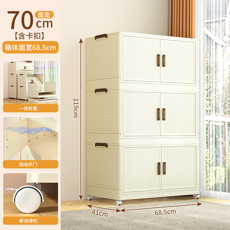 • 70 접이식 저장 캐비닛 3 층-크림 컬러 도어 패널