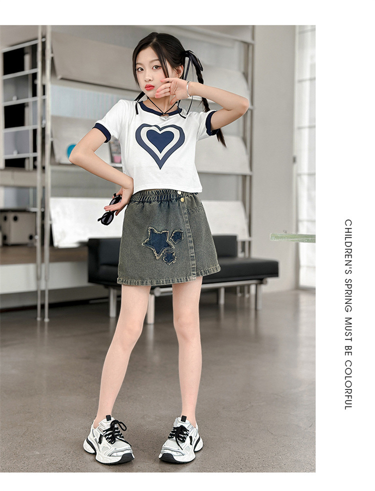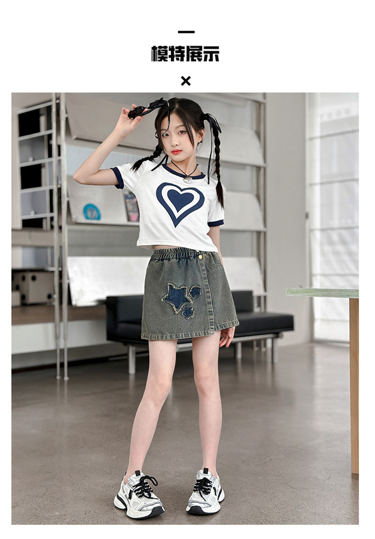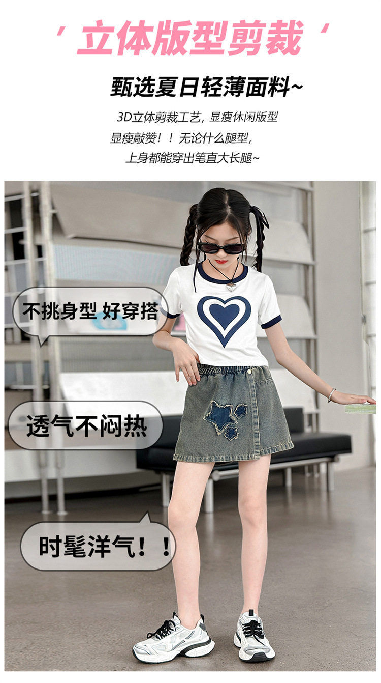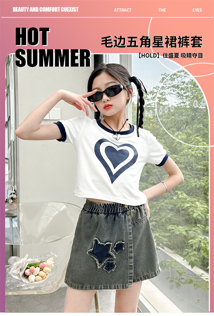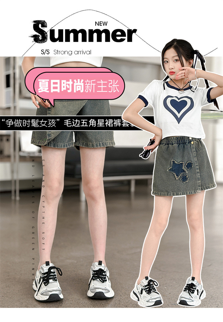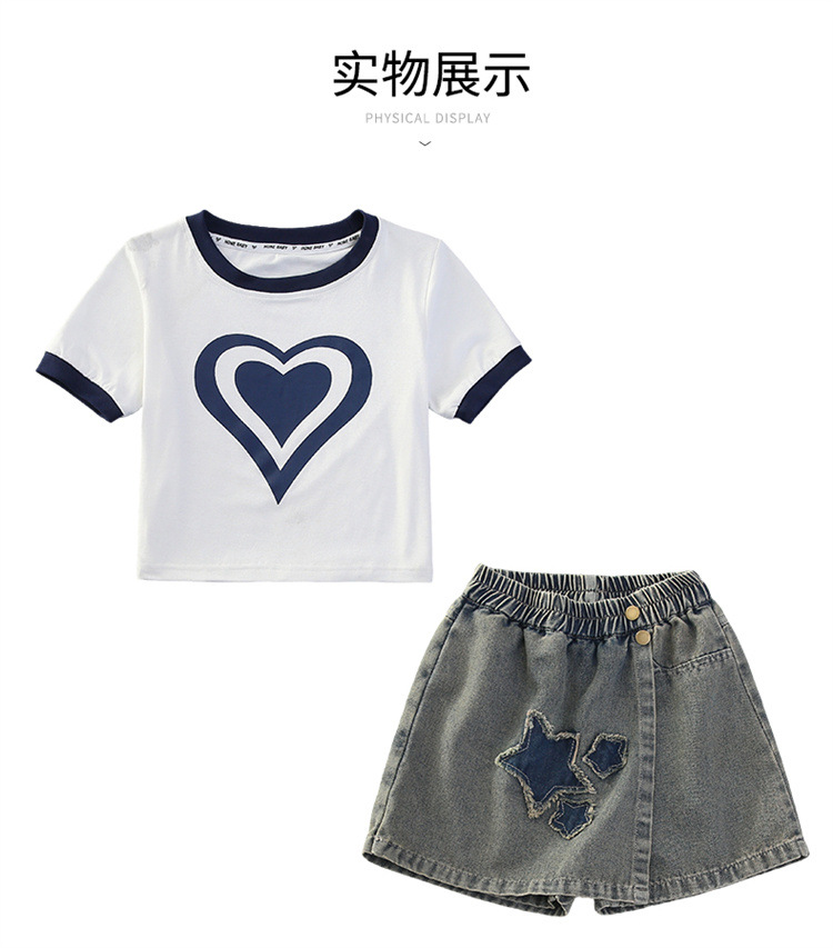 소녀 여름 세트 얇은 2024 여름 원피스 대형 어린이 반팔 티셔츠 반바지 투피스 세트 트렌디 티셔츠스토어 가기