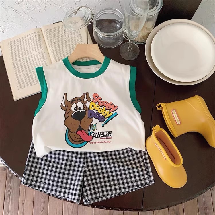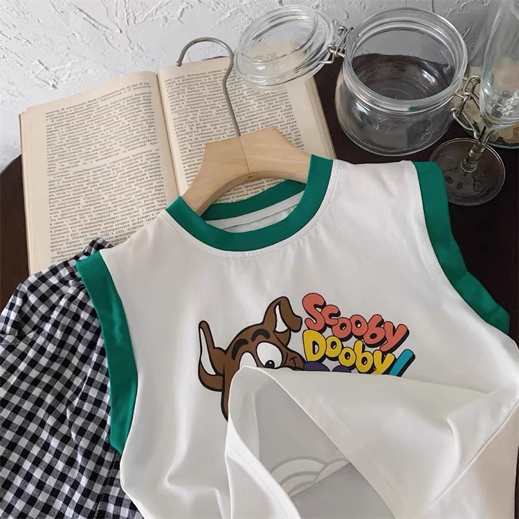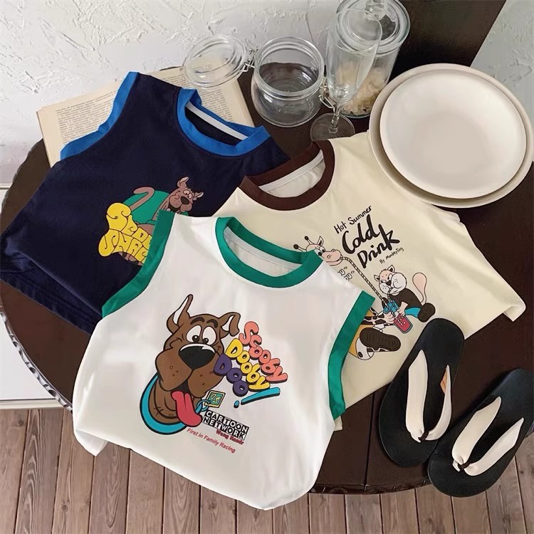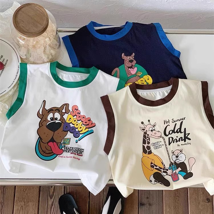 100 면 소년 조끼 민소매 티셔츠 아동복 만화 인쇄 느슨한 느슨한 아기 소녀 최고 캐주얼 여름스토어 가기