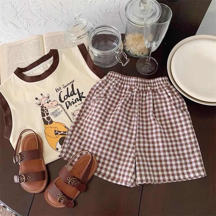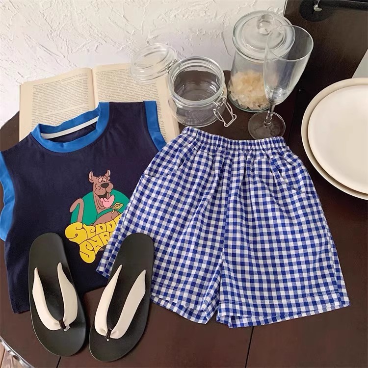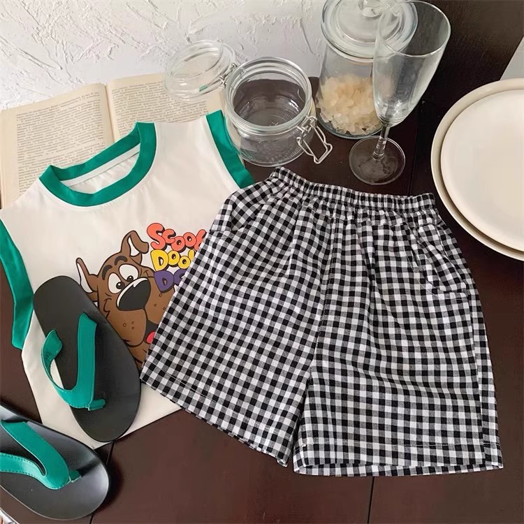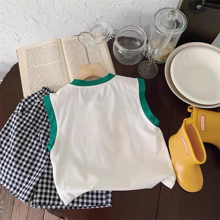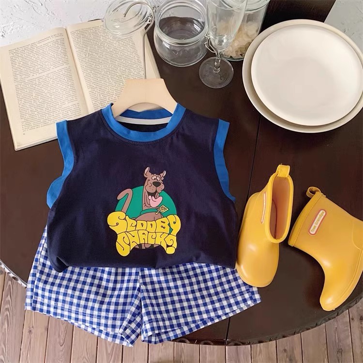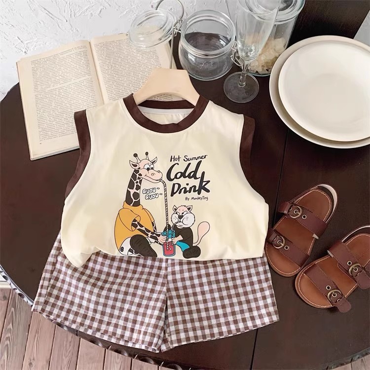 100 면 소년 조끼 민소매 티셔츠 아동복 만화 인쇄 느슨한 느슨한 아기 소녀 최고 캐주얼 여름