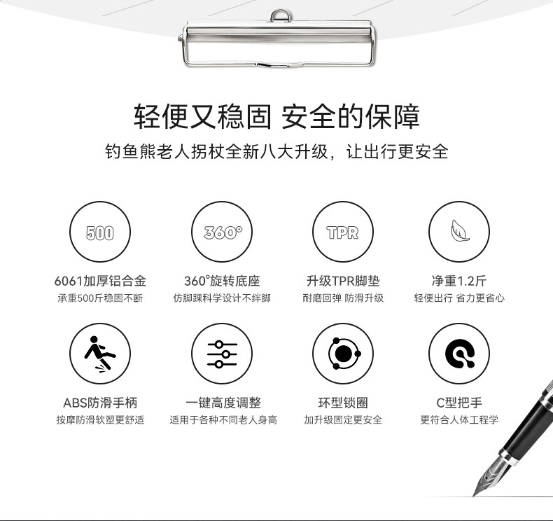 낚시 곰 노인의 목발 미끄럼 방지 라이트 워킹 스틱 노인의 워킹 에이드 노인의 야외 마운틴 클라이밍 워킹 스틱스토어 가기