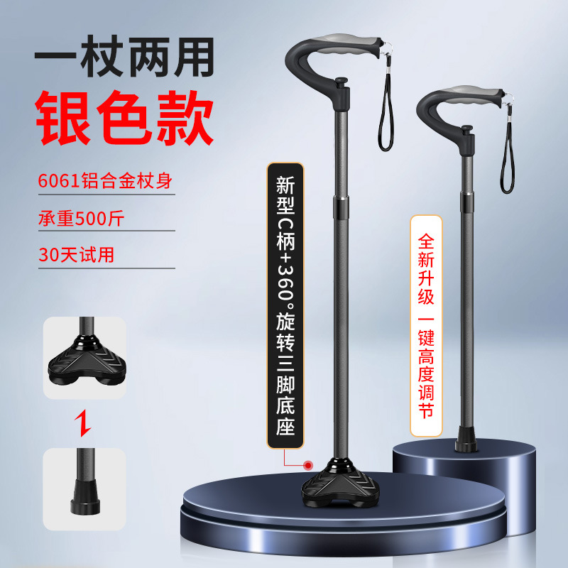 • 새로운 C 핸들 [원 키 텔레스코픽] 실버, 회전하는 3 다리 이중 목적