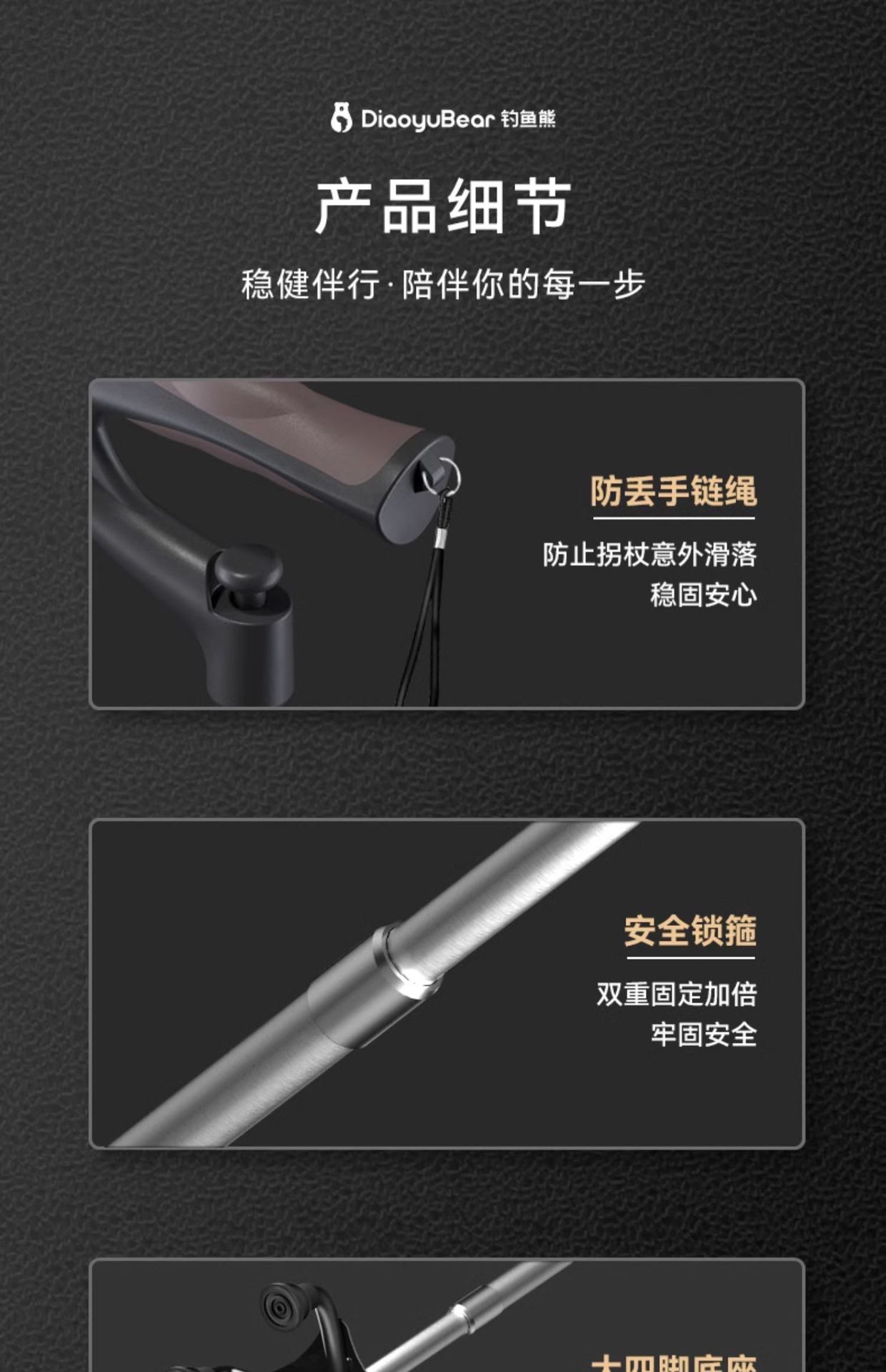 낚시 곰 노인의 목발 미끄럼 방지 라이트 워킹 스틱 노인의 워킹 에이드 노인의 야외 마운틴 클라이밍 워킹 스틱