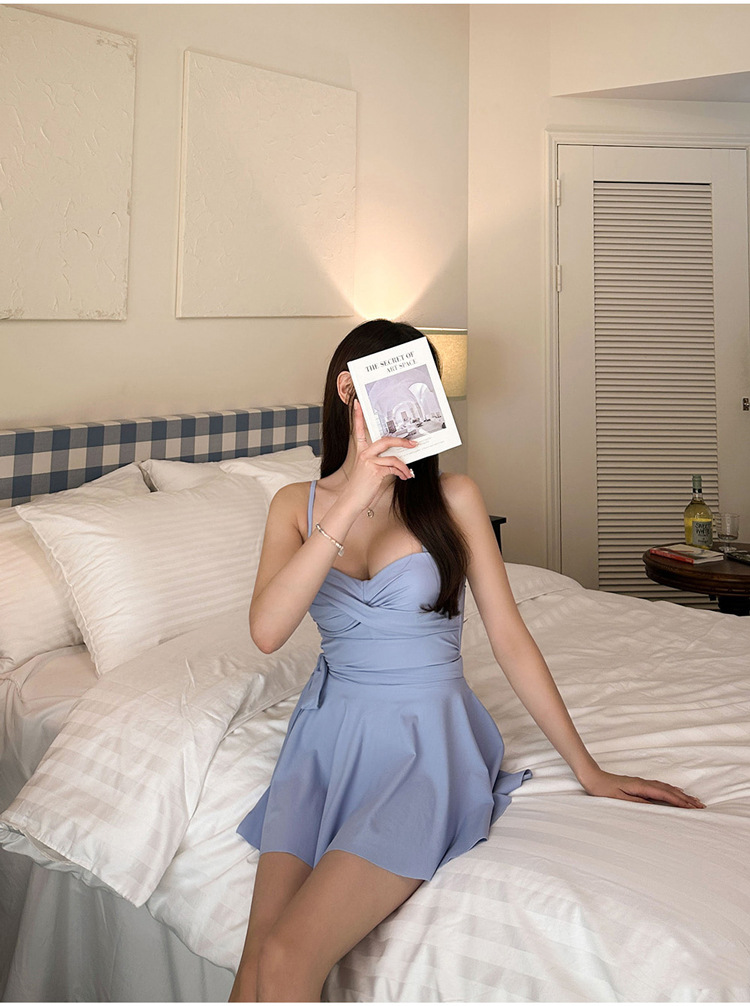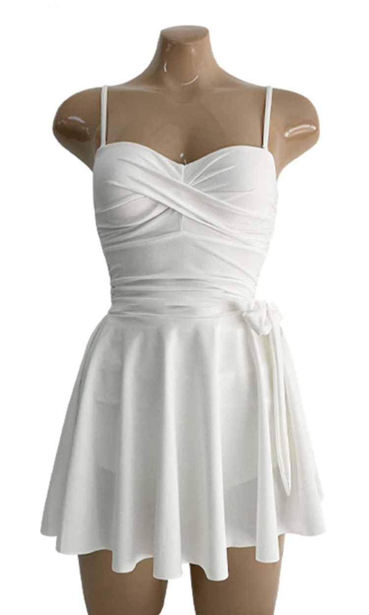 소스 공장 솔리드 컬러 화이트 타이트 슬림 작은 신선한 보수적 스커트 투피스 삼각형 유럽과 미국 원피스 수영복 여성스토어 가기