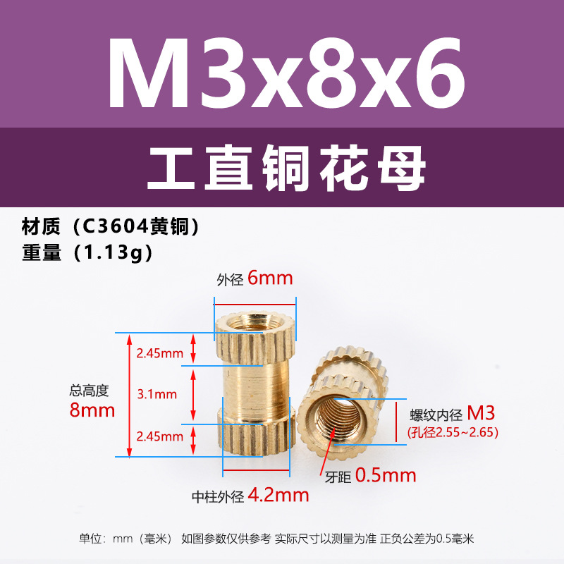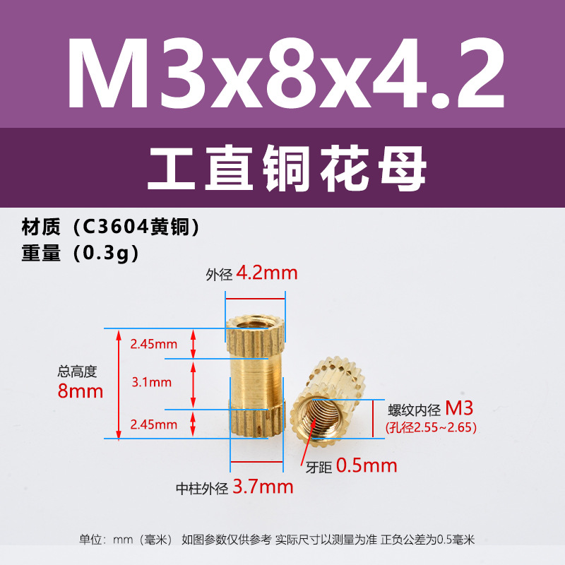 • M3 * 8*4.2 (직선 구리 꽃 어머니)