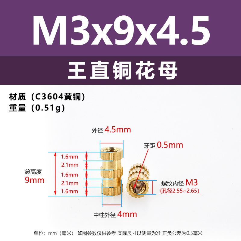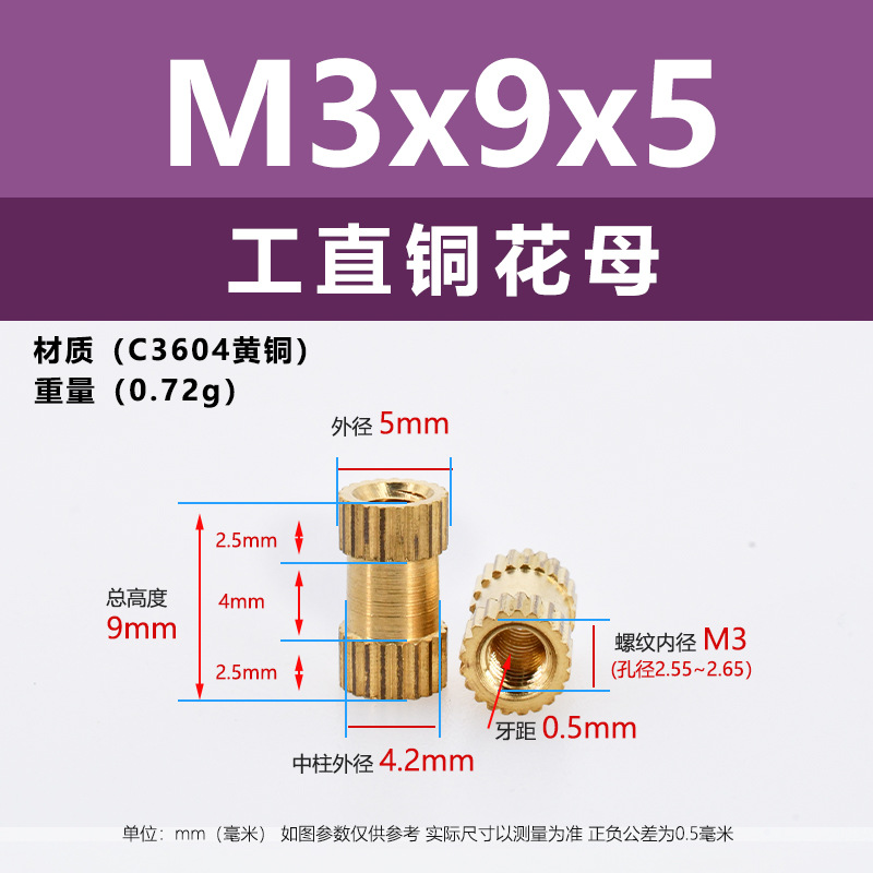 • M3 * 9*5 (직선 구리 꽃 어머니)