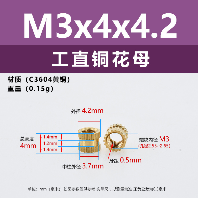 • M3 * 3*4.2 (직선 구리 꽃 어머니)