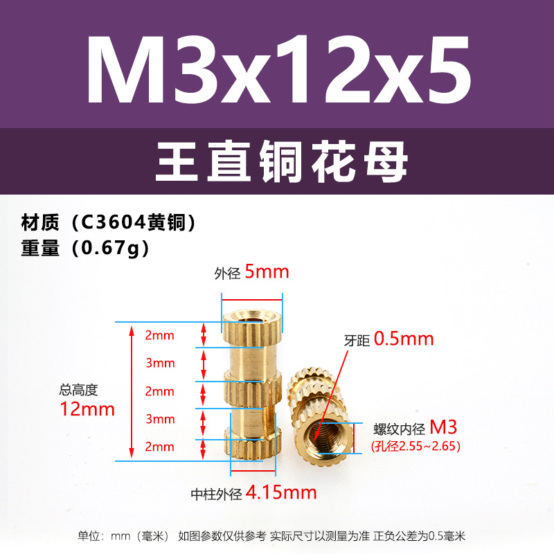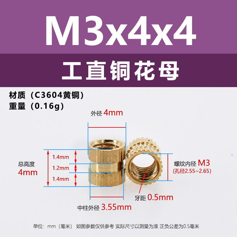 • M3 * 3*4 (직선 구리 꽃 어머니)