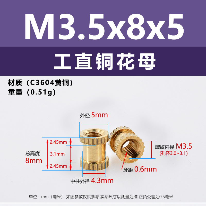 • M3.5 * 8*5 (직선 구리 어머니)