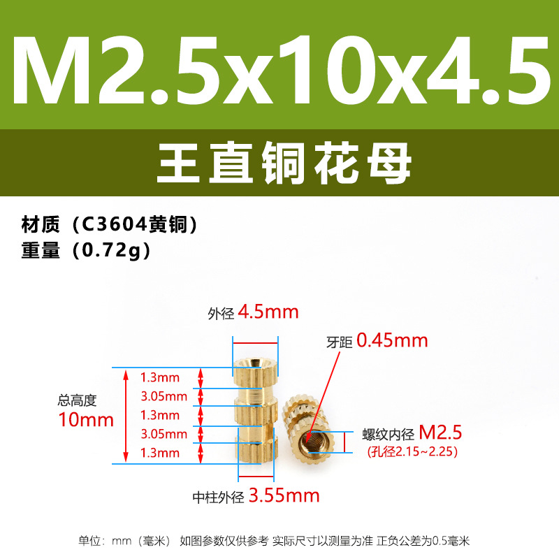 • M2.5 * 4*4.5 (직선 구리 어머니)