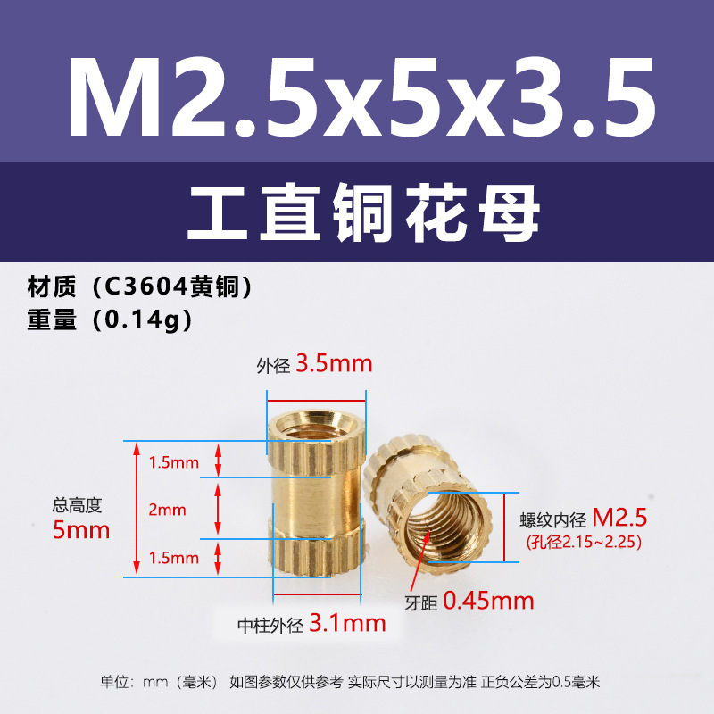 • M2.5 * 3.5*3.5 (직선 구리 어머니)