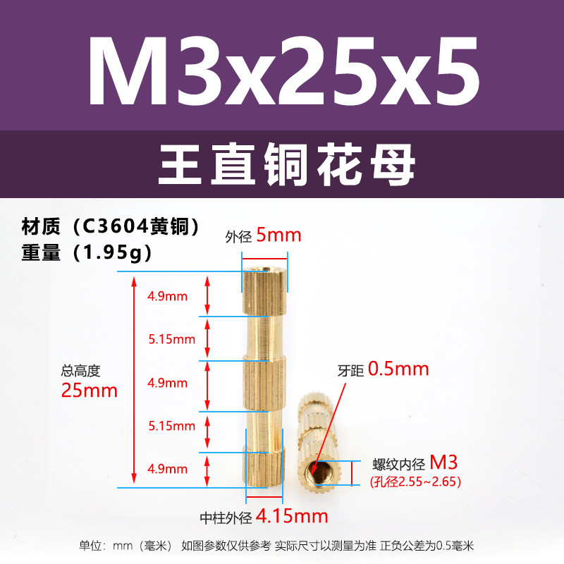 • M2.5 * 4*4 (직선 구리 꽃 어머니)