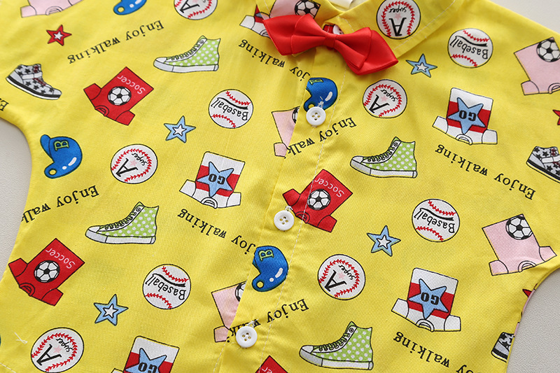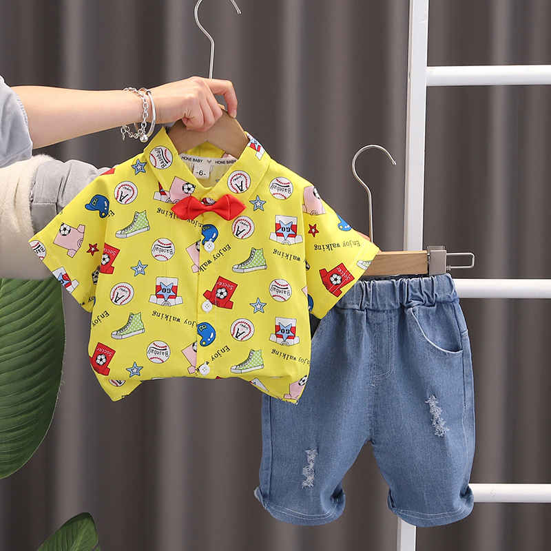 바오 마이 소년 세트 반팔 셔츠 2024 새로운 셔츠 얇은 영국 스타일 만화 어린이 여름 투피스 세트