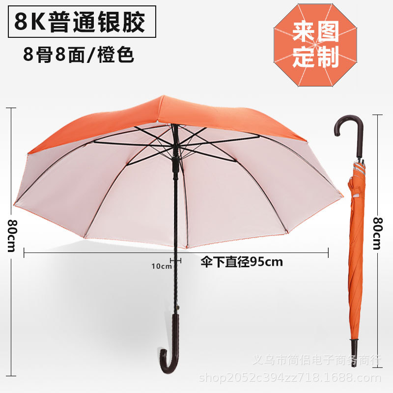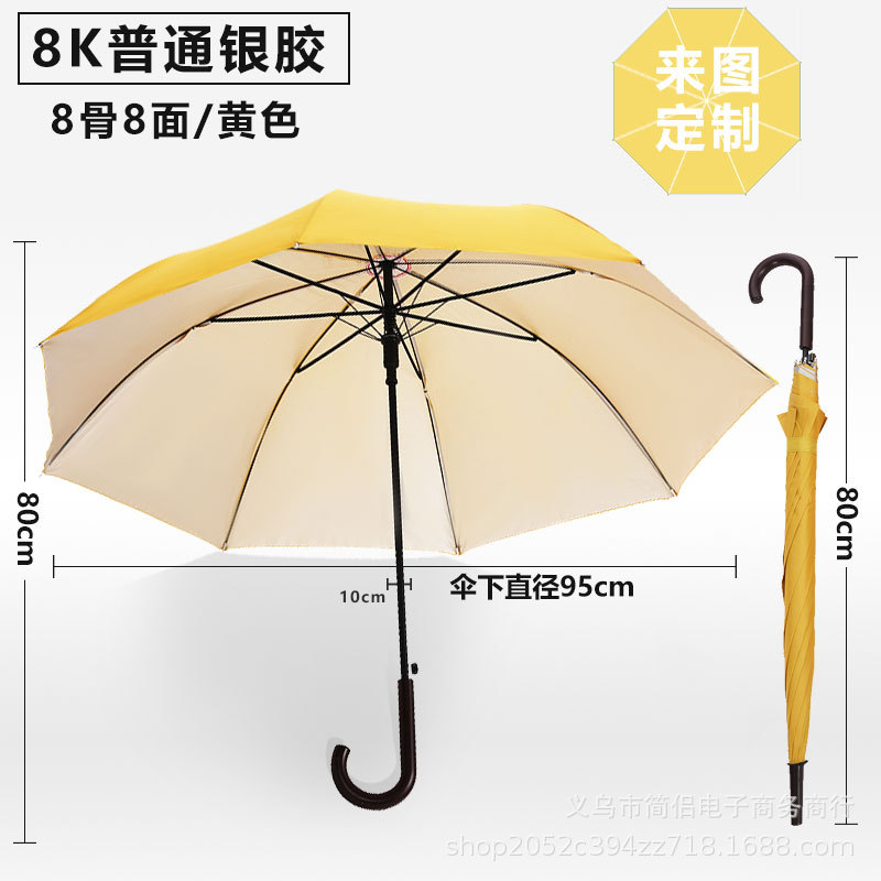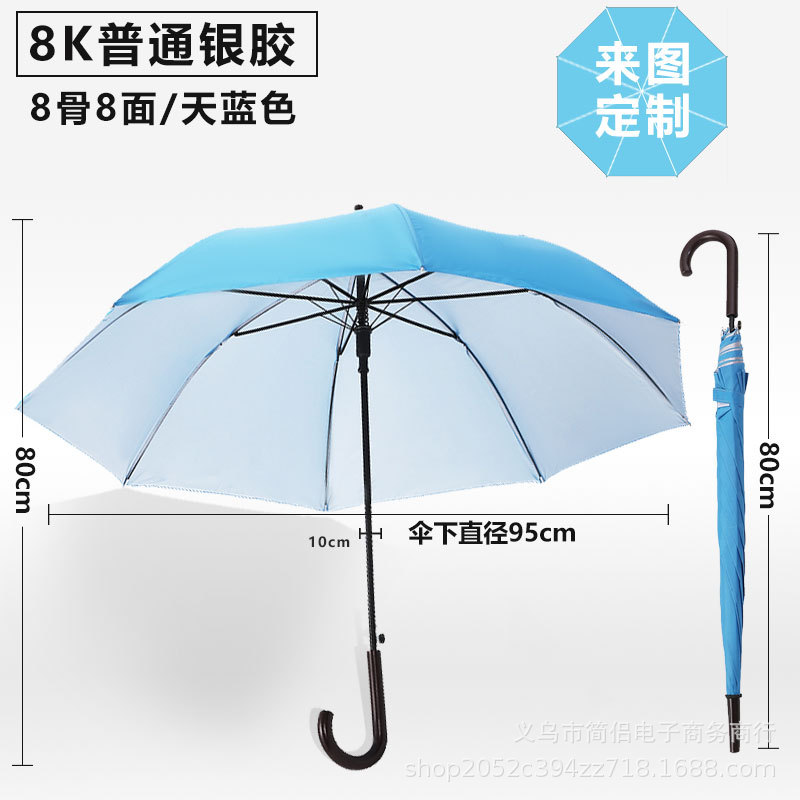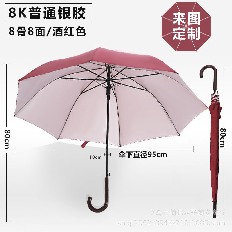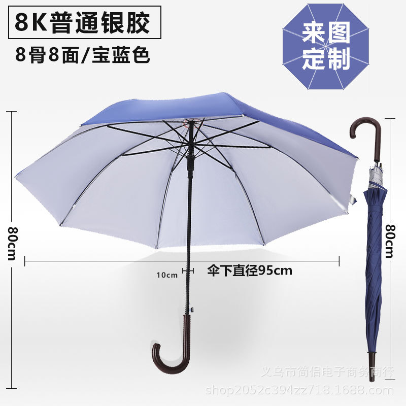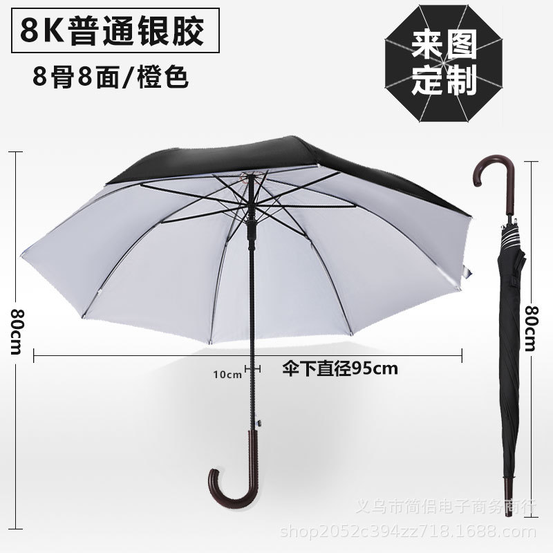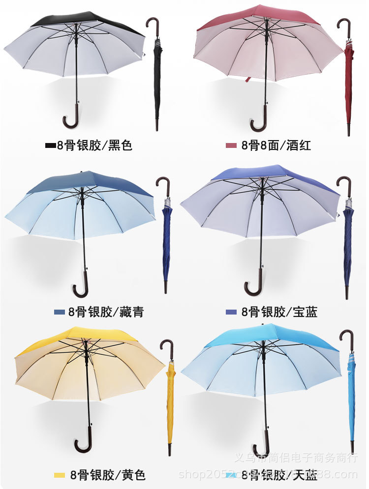 우산 인쇄 로고 선물 우산 광고 우산 도매 실버 고무 우산 자동 스트레이트 긴 손잡이 우산 곡선 핸들 우산스토어 가기