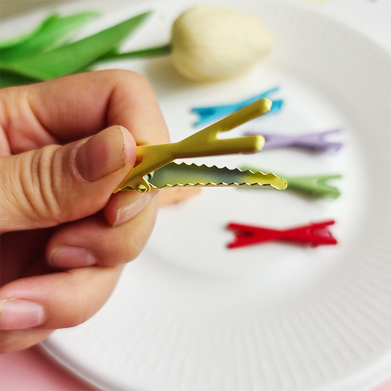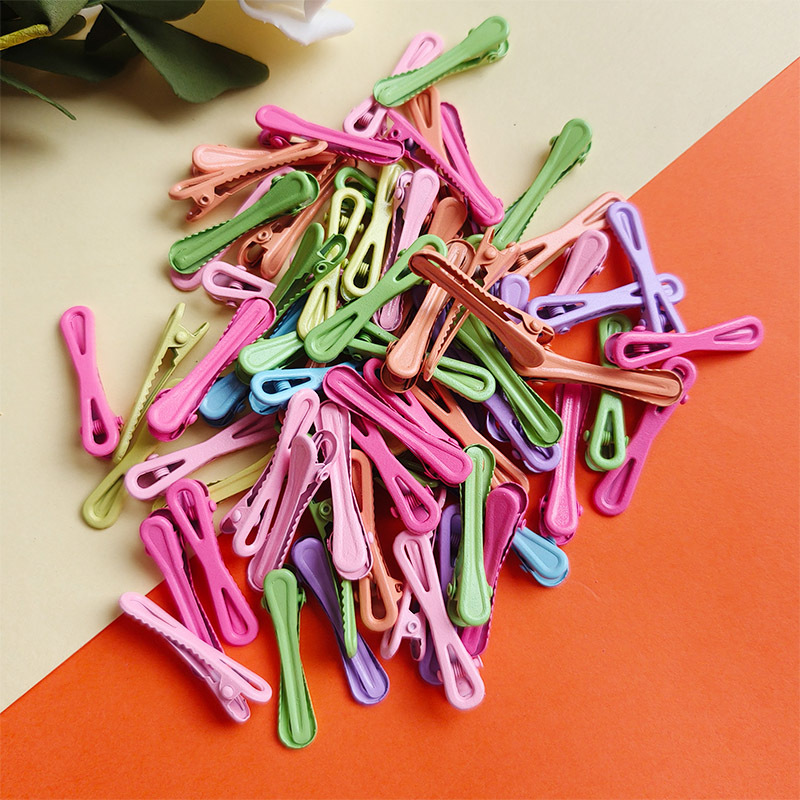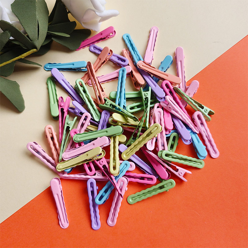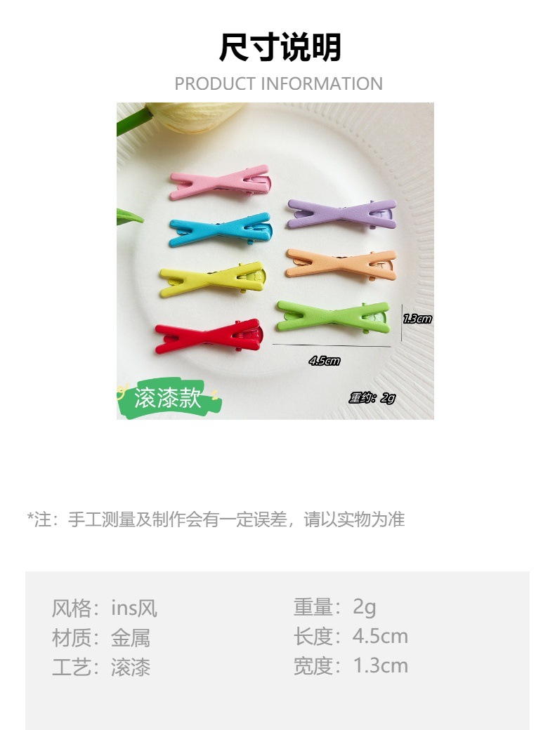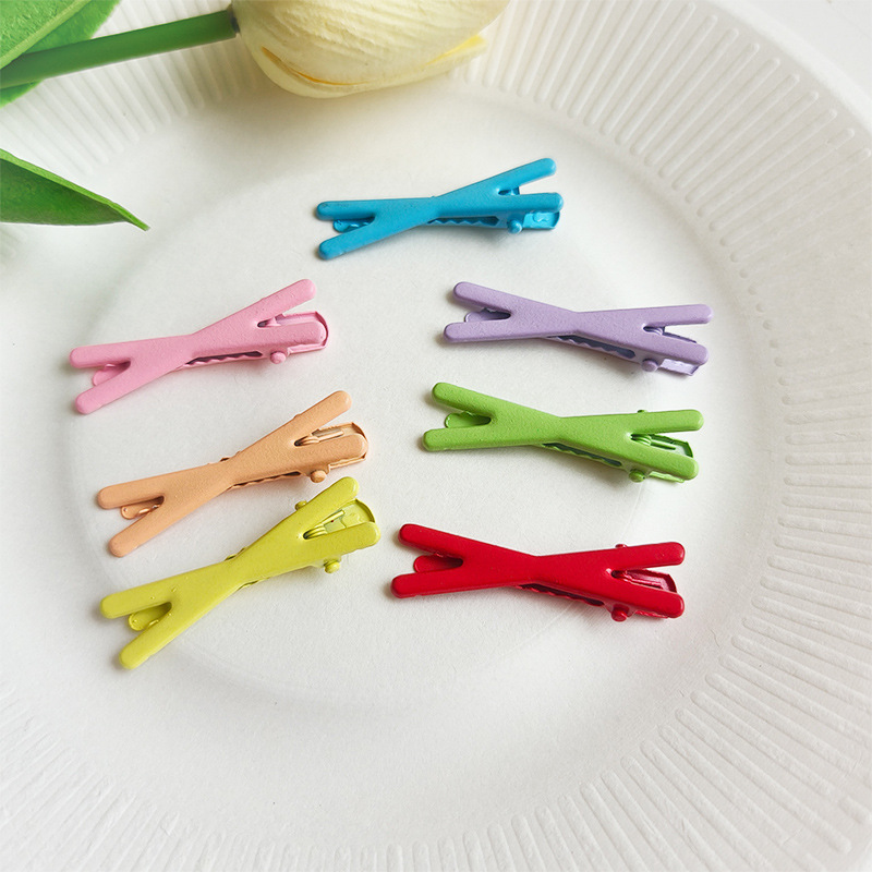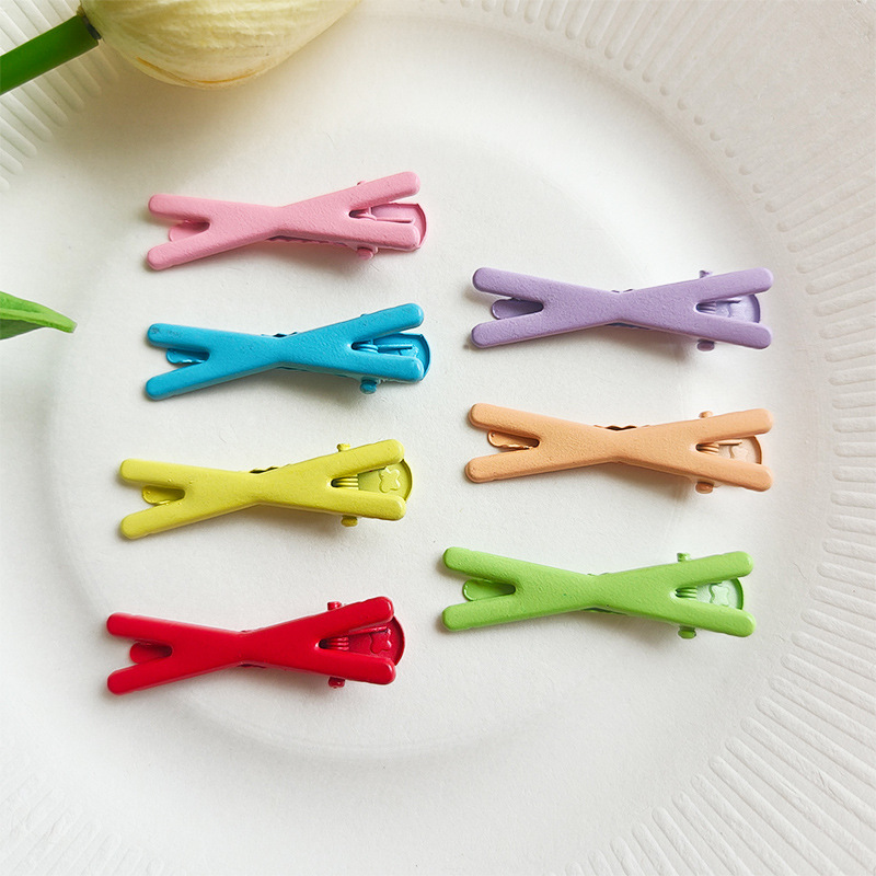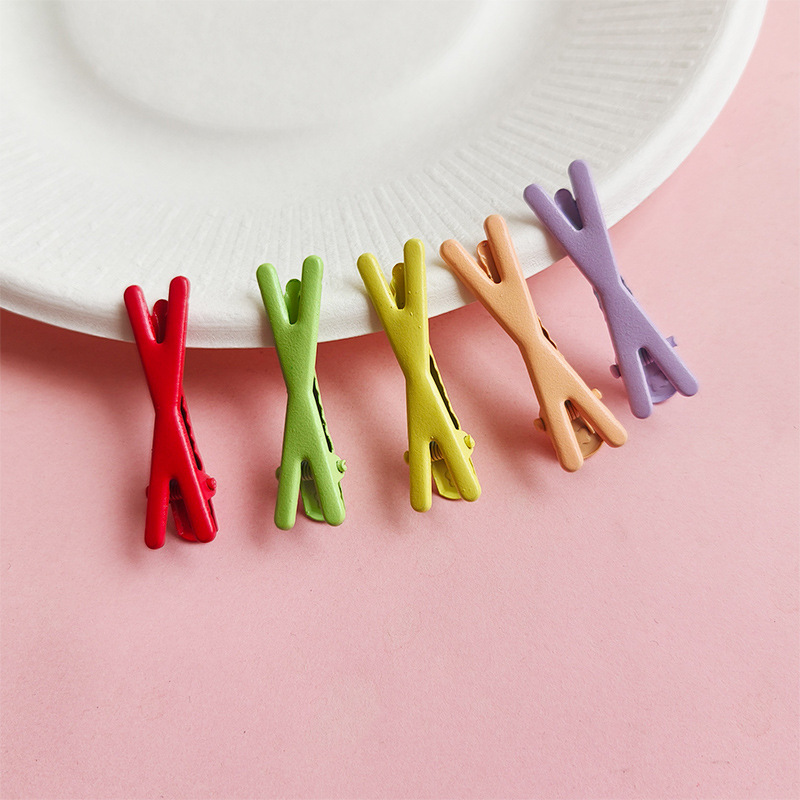 4.5cm 캔디 컬러 롤링 페인트 덕빌 클립, 흔적 없는 헤어핀, 심플한 소녀용 X자형 클립, 도파민 인플루언서 스타일 헤어 액세서리