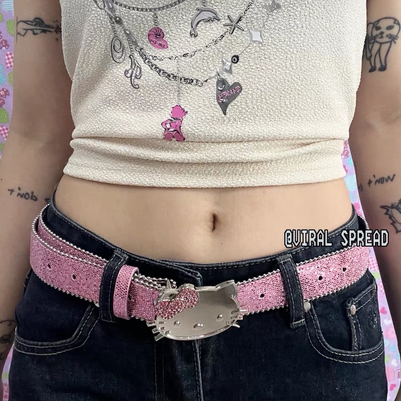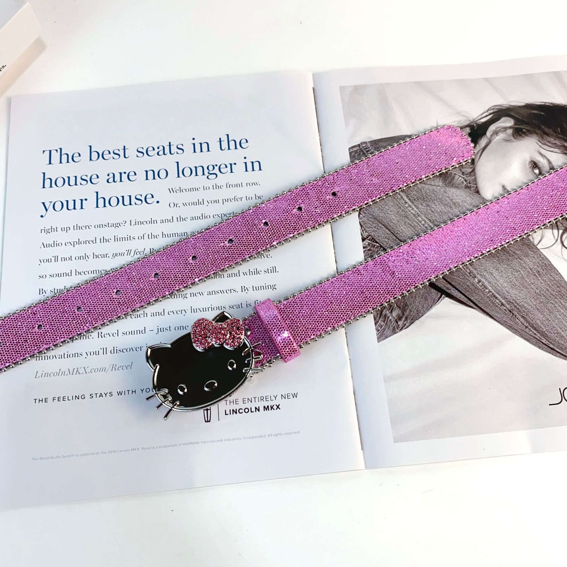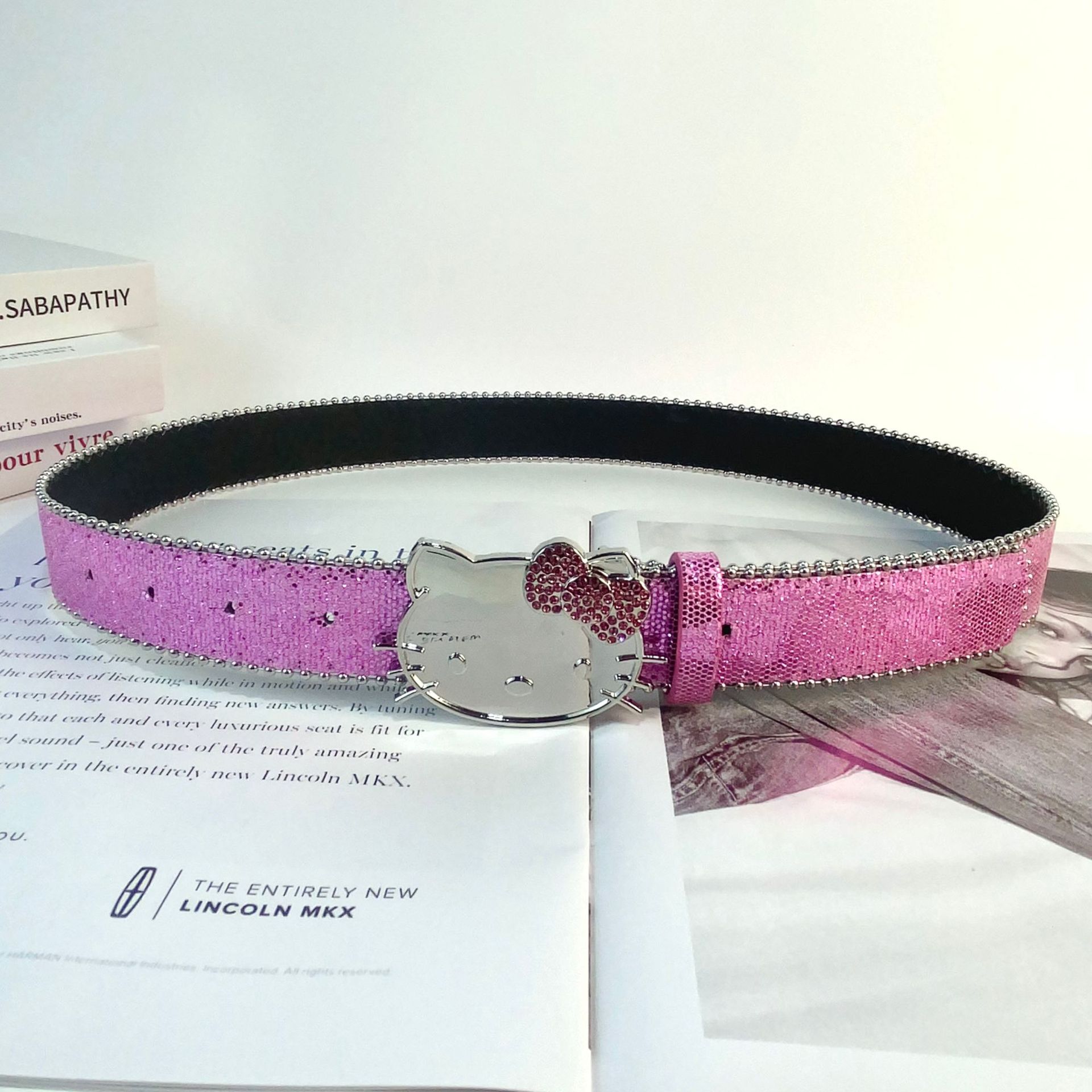 헬로 키트 핑크 벨트 여성 헬로 키티 밀레니엄 스파이스 Y2K 독특한 한국 스타일 만화 학생 벨트