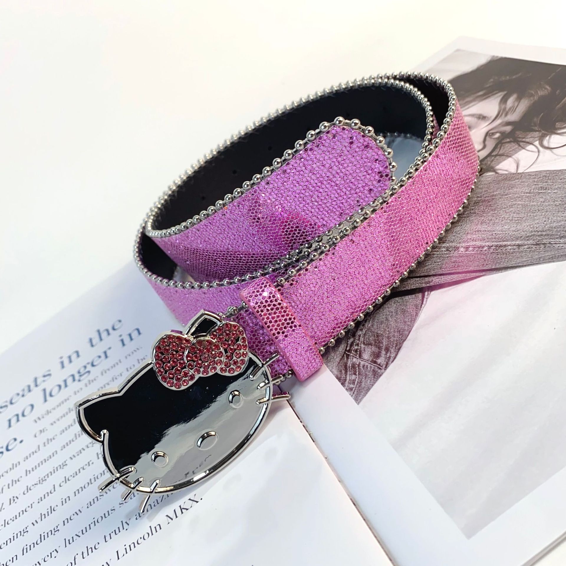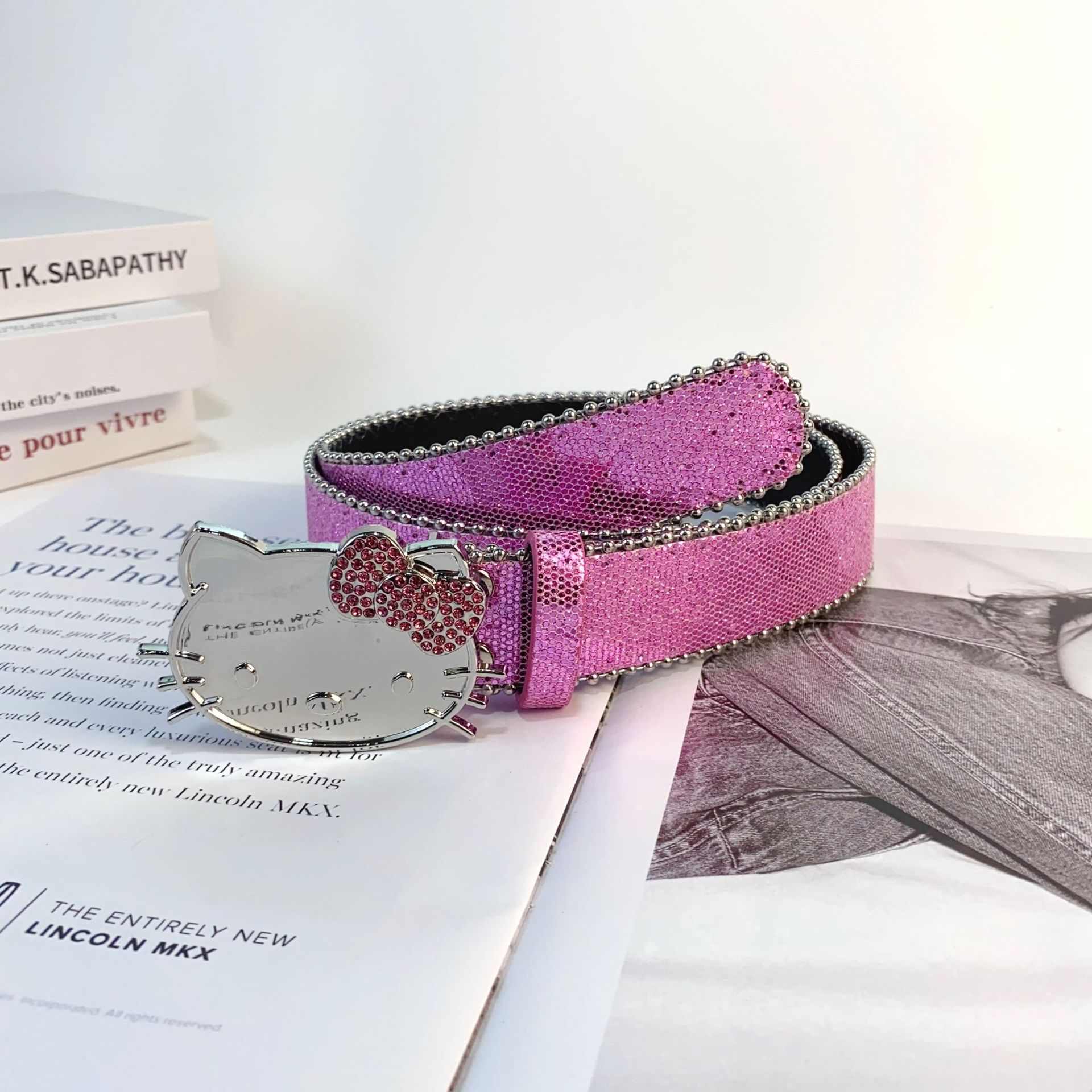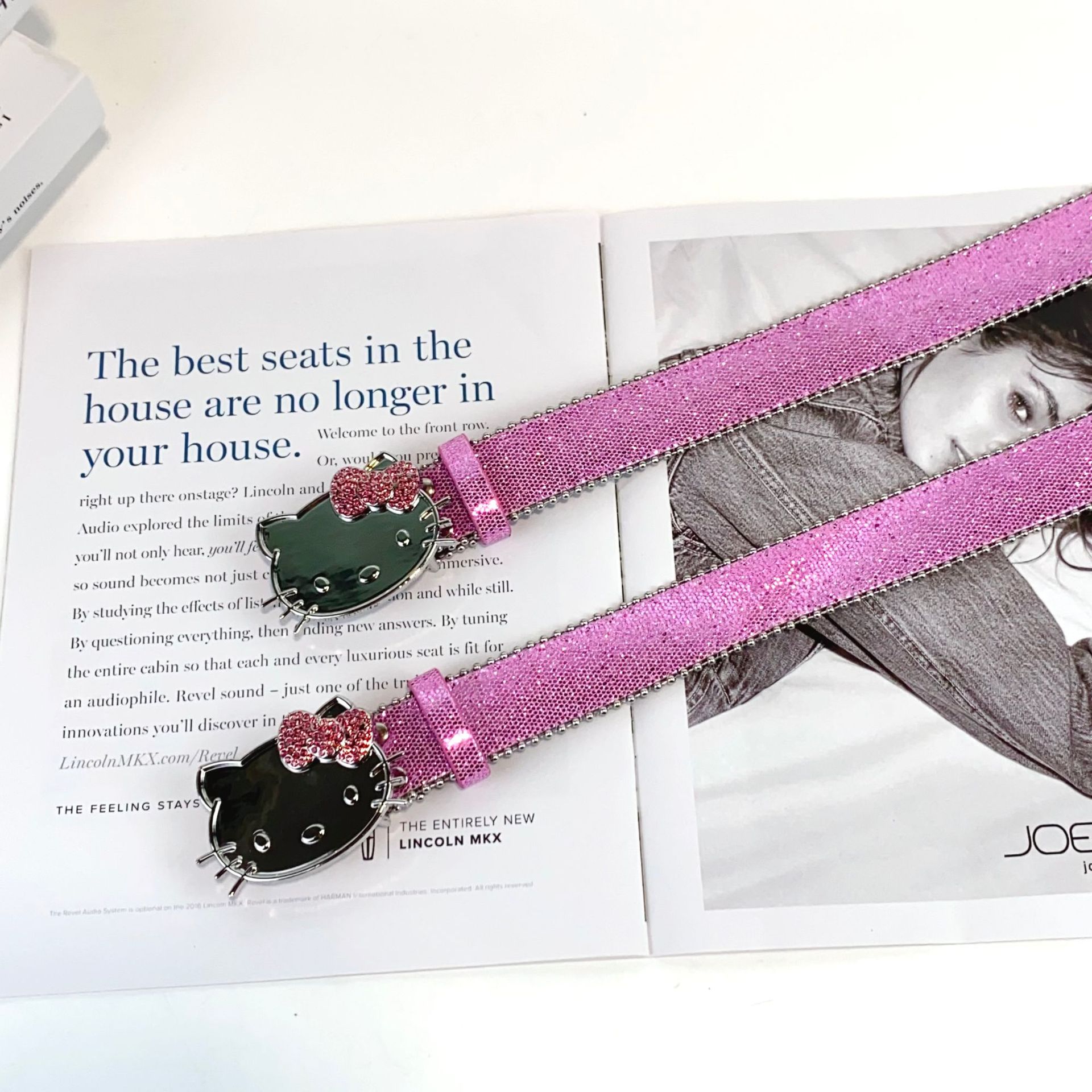 헬로 키트 핑크 벨트 여성 헬로 키티 밀레니엄 스파이스 Y2K 독특한 한국 스타일 만화 학생 벨트