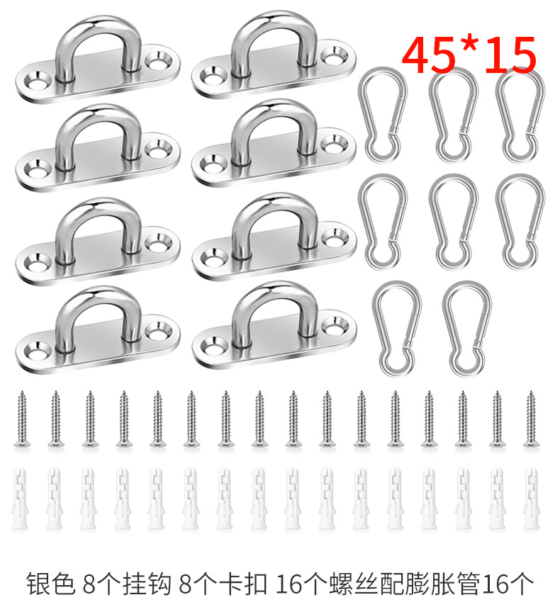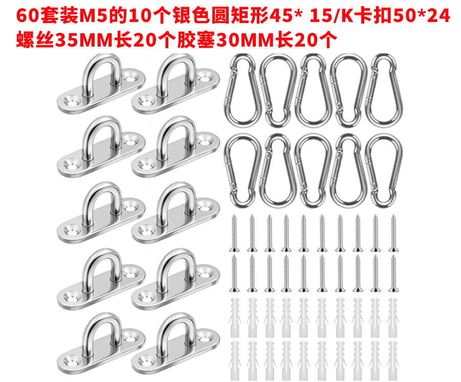 • 은색 원형 직사각형 M5 45*15/8개 + M8 나사*16, 확장 튜브*16, 버클*8