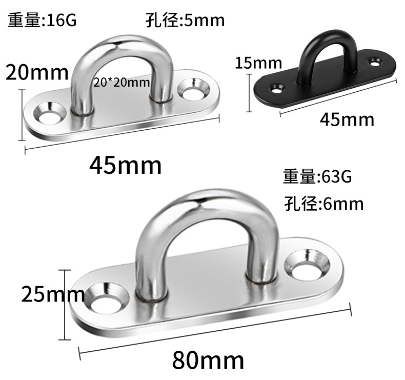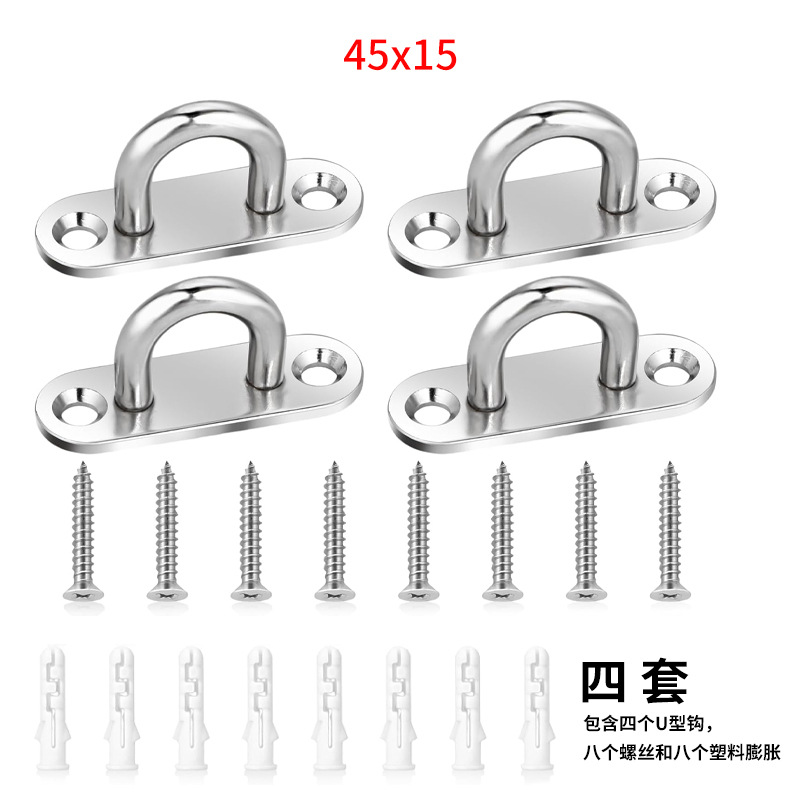 • 무게 80g, 은색 원형 직사각형 M5, 45*15, U자형 후크 4개, 나사 8개 및 플라스틱 확장 장치 8개