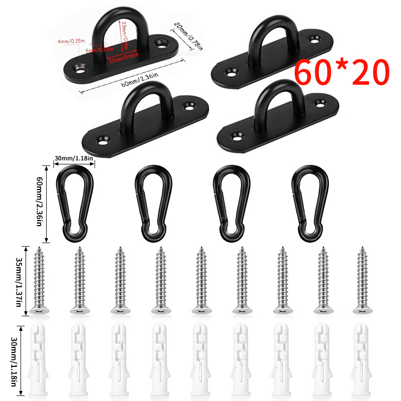 • 긴 원형(4PCS) 나사 M5 포함 - 내하중 40KG, 아일렛 플레이트 1개 + 카라비너 1개 + 나사