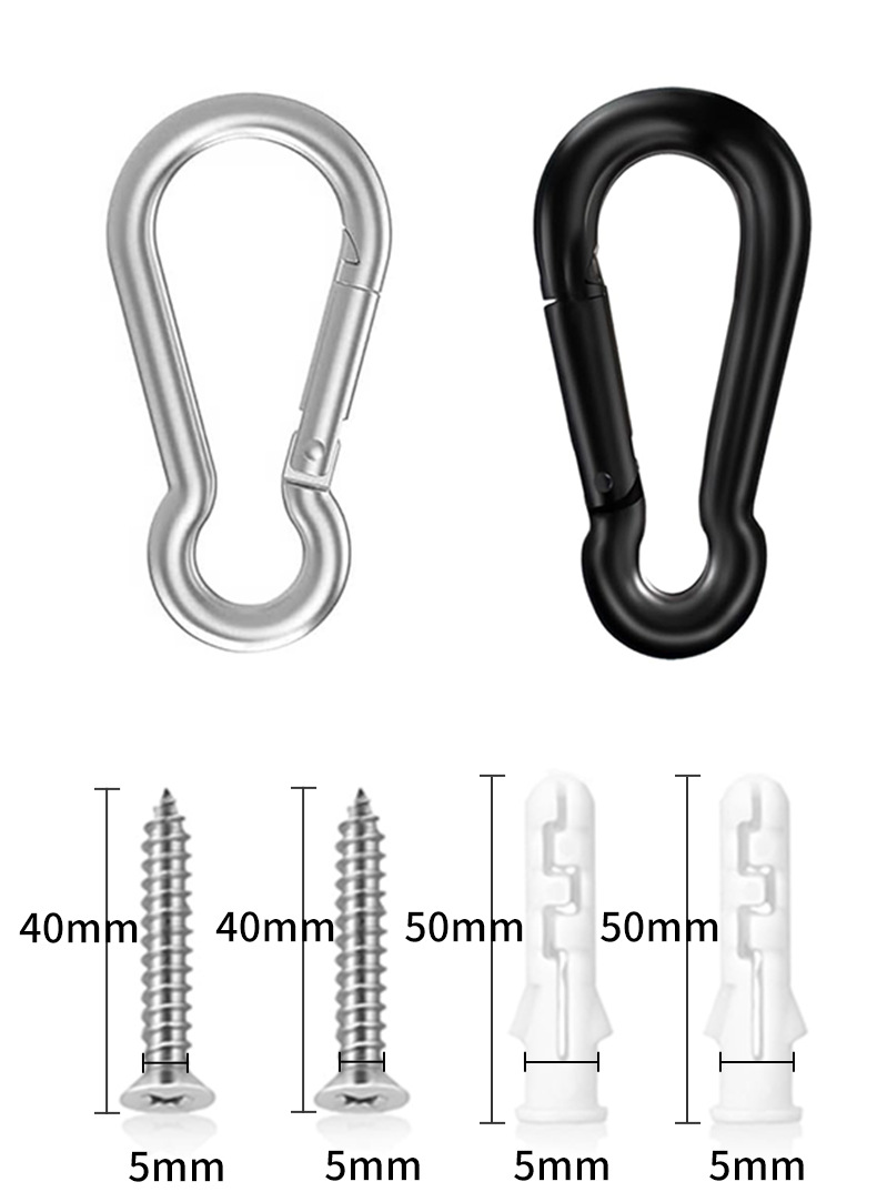 • 원형(4PCS) 나사 M5 포함 - 내하중 40KG, 아일렛 플레이트 1개 + 카라비너 1개 + 나사 1개