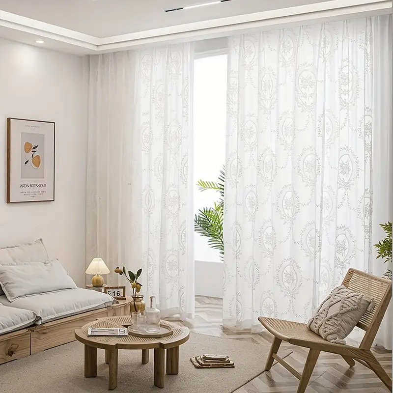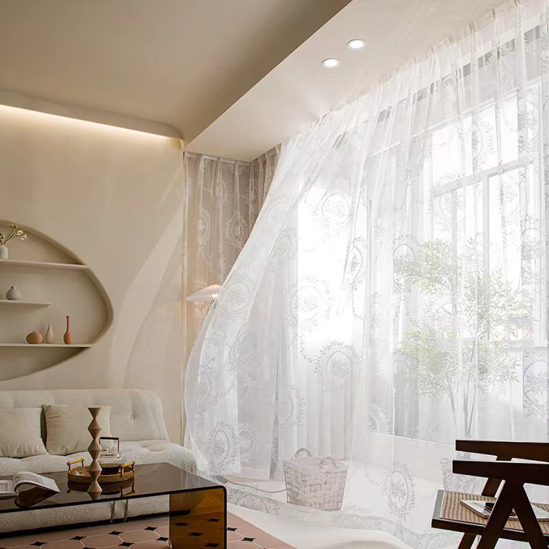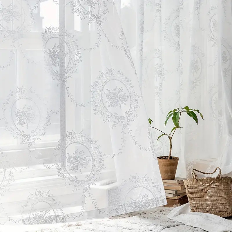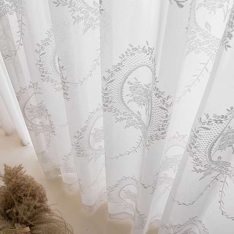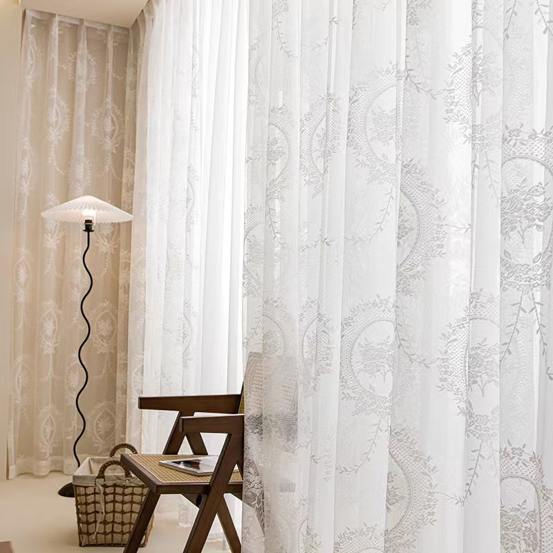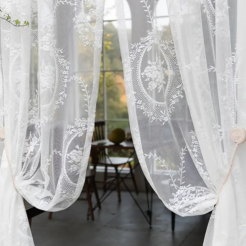 프랑스 워프 니트 레이스 커튼 로맨틱 유럽 스타일 거실 발코니 창 화면 빈티지 자수 꽃 안경 중간 꽃 마감 문 커튼스토어 가기