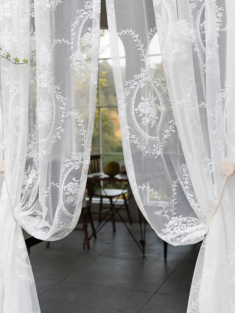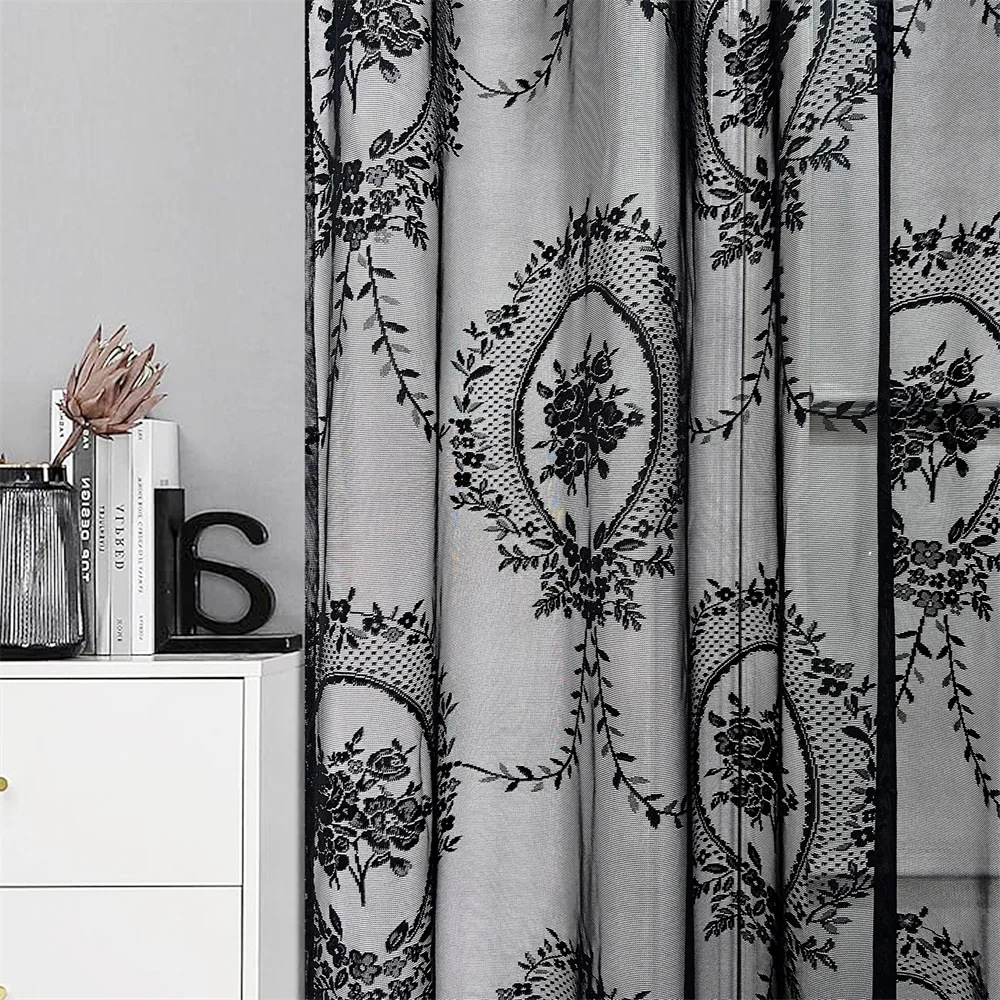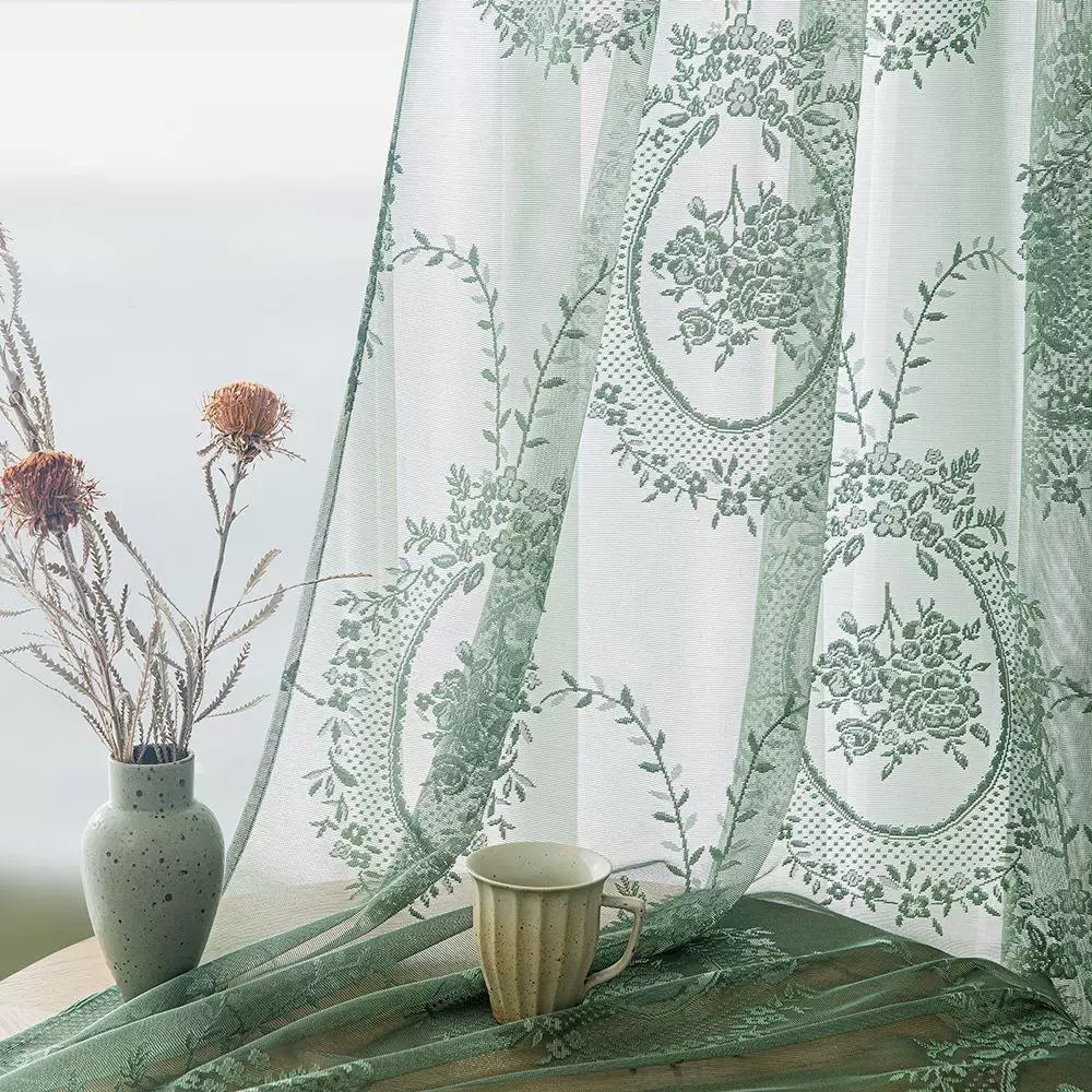 프랑스 워프 니트 레이스 커튼 로맨틱 유럽 스타일 거실 발코니 창 화면 빈티지 자수 꽃 안경 중간 꽃 마감 문 커튼
