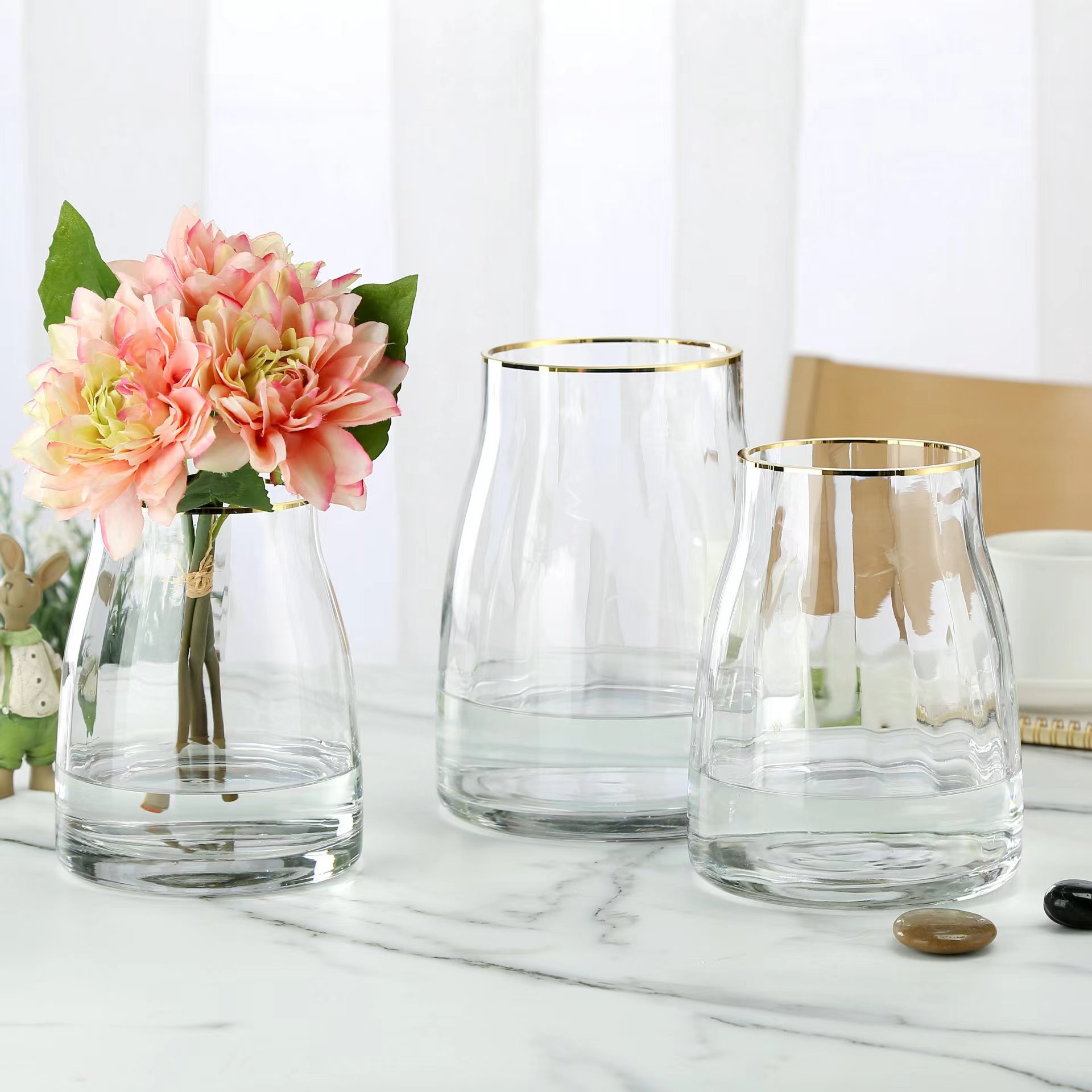 북유럽 스타일의 투명 유리 꽃병 거실 장식품 물 장미 백합 꽃 꽃꽂이 홈 장식