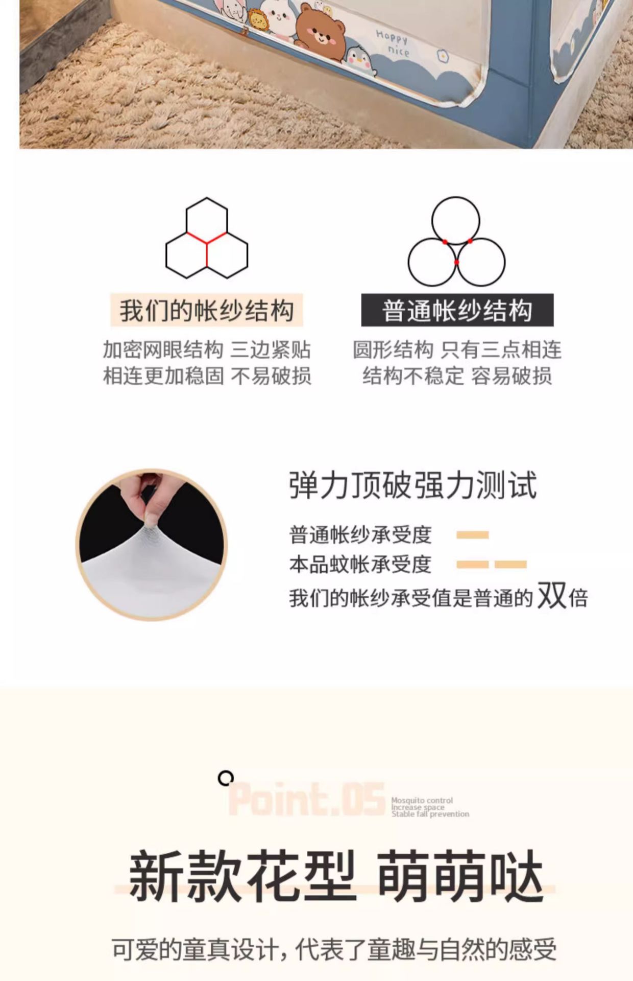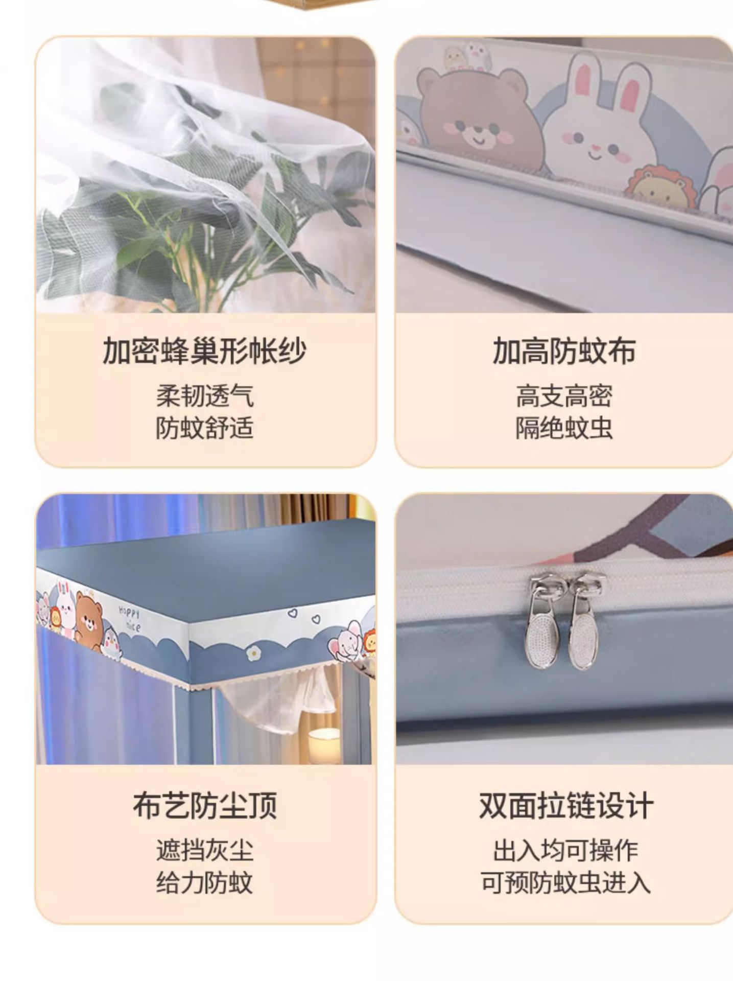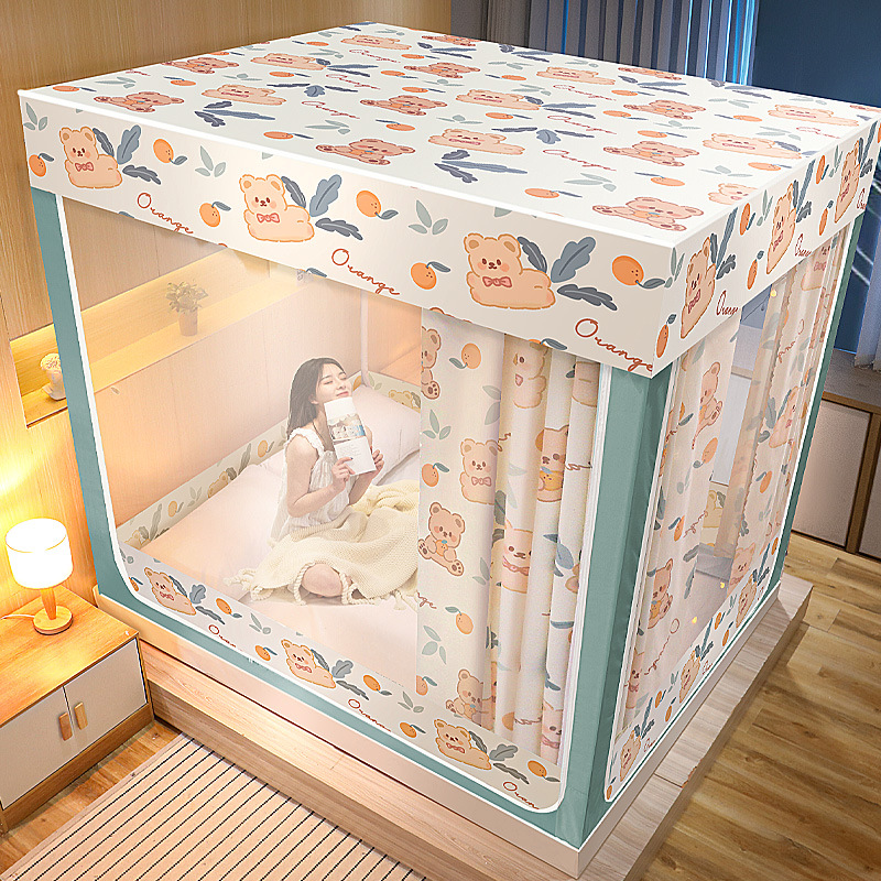 가정용 침실 낙상 방지 어린이 침대 커튼, 차광 텐트, 지퍼형 사각 텐트, 침대 모기장, 재고 정리, 3개의 개폐문, 완전 차광