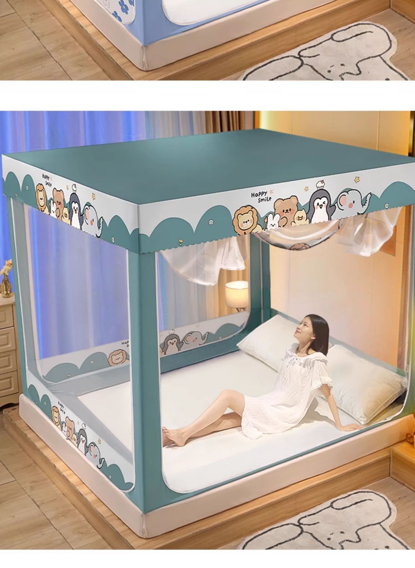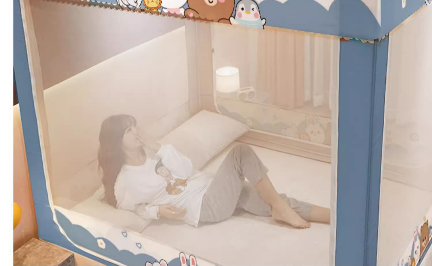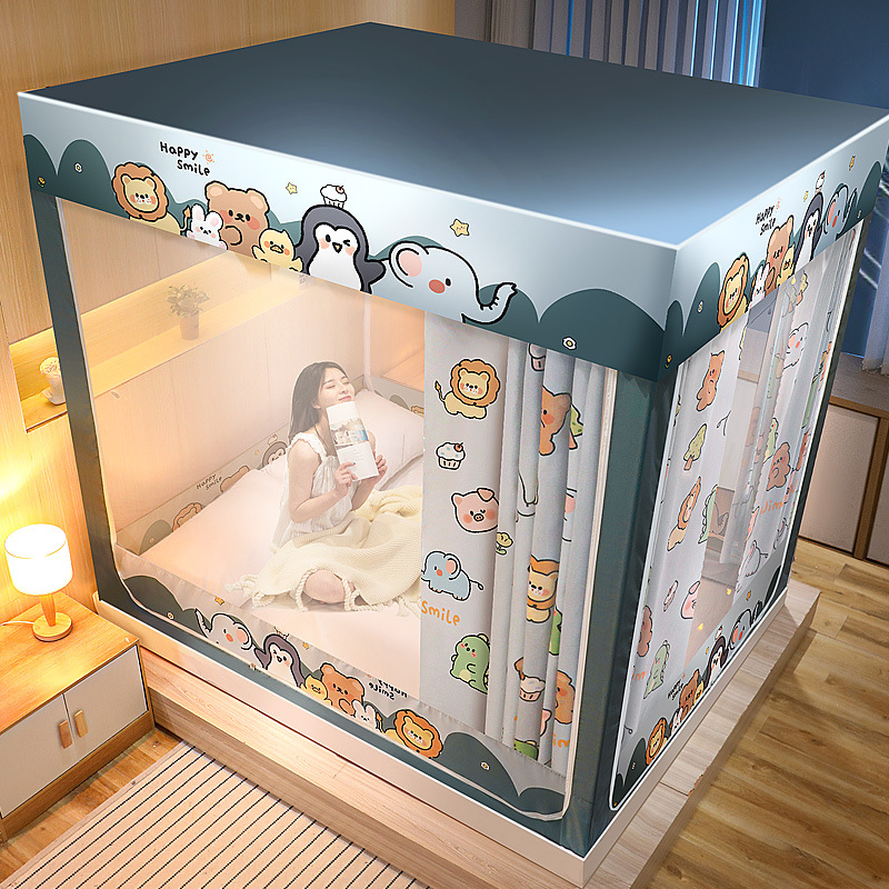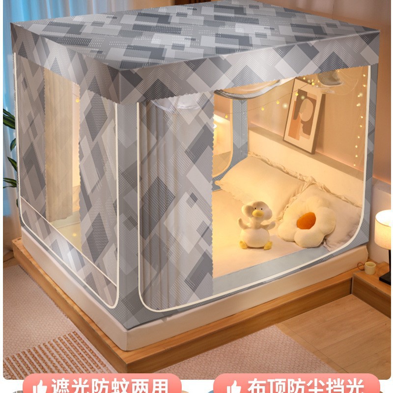 가정용 침실 낙상 방지 어린이 침대 커튼, 차광 텐트, 지퍼형 사각 텐트, 침대 모기장, 재고 정리, 3개의 개폐문, 완전 차광스토어 가기