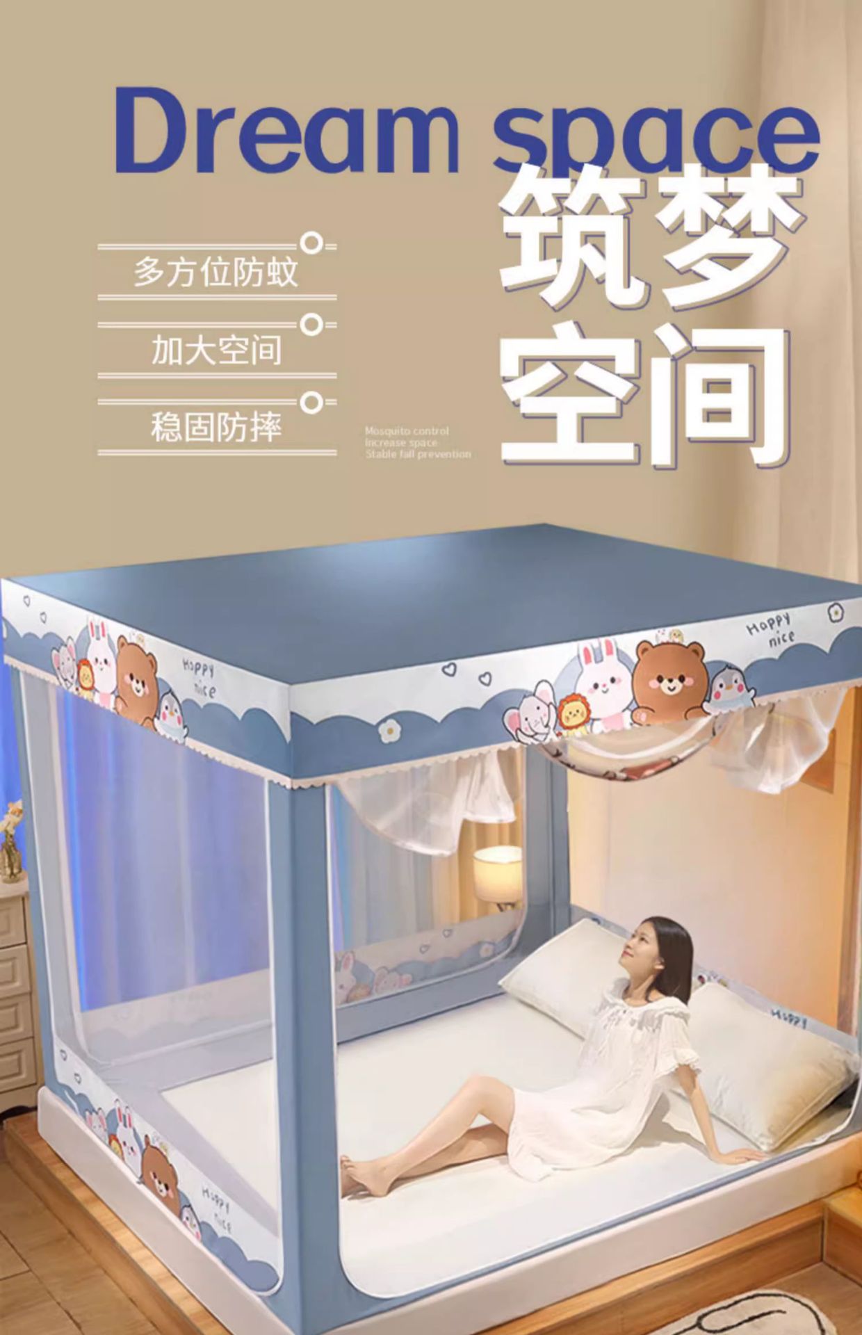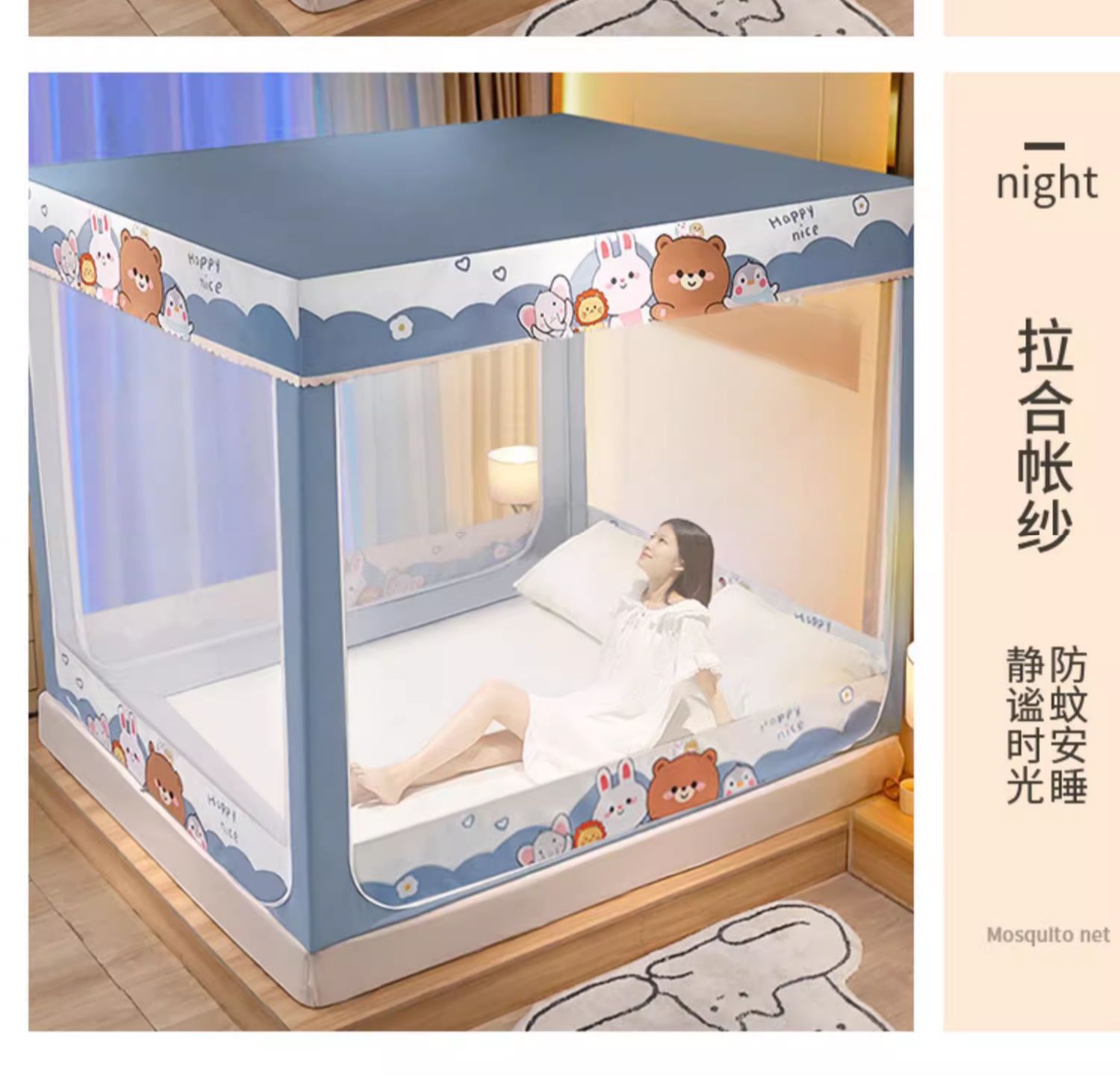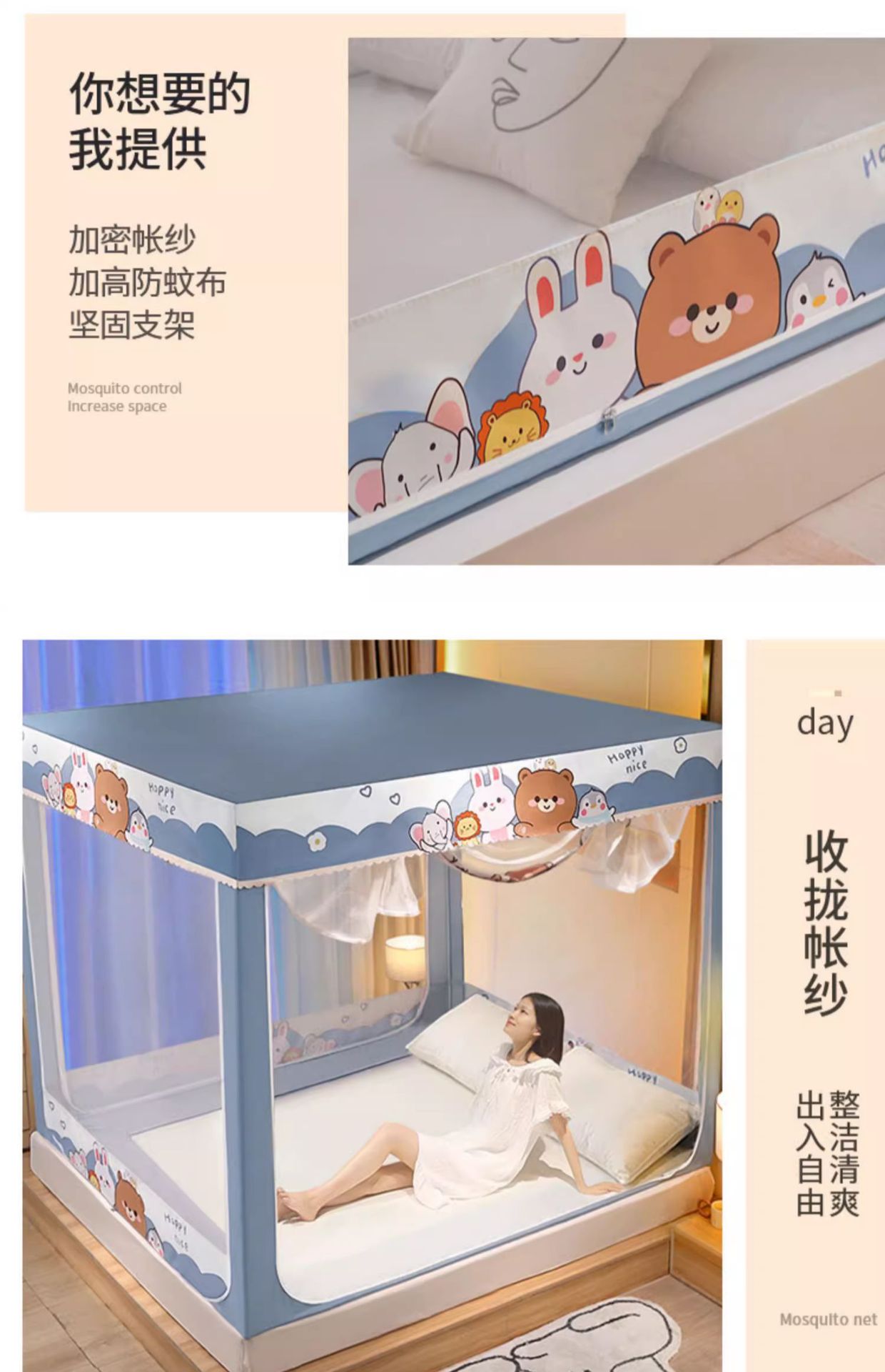 가정용 침실 낙상 방지 어린이 침대 커튼, 차광 텐트, 지퍼형 사각 텐트, 침대 모기장, 재고 정리, 3개의 개폐문, 완전 차광스토어 가기