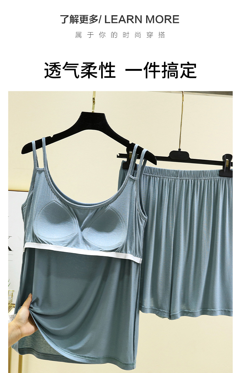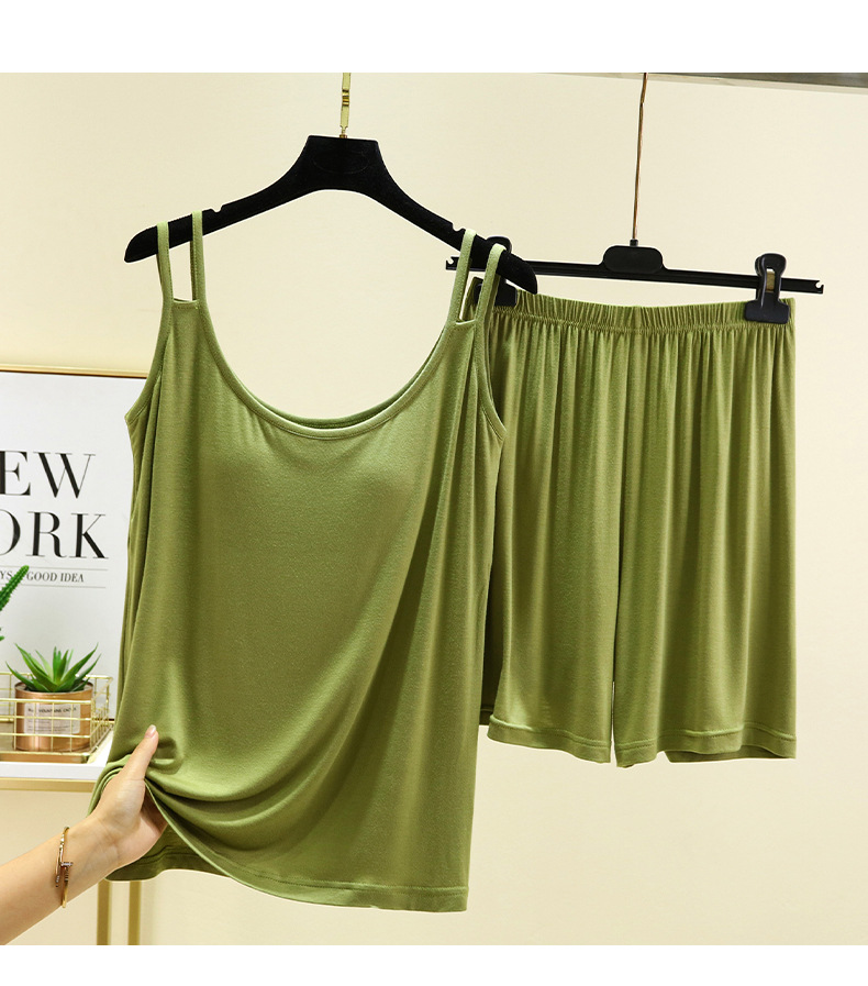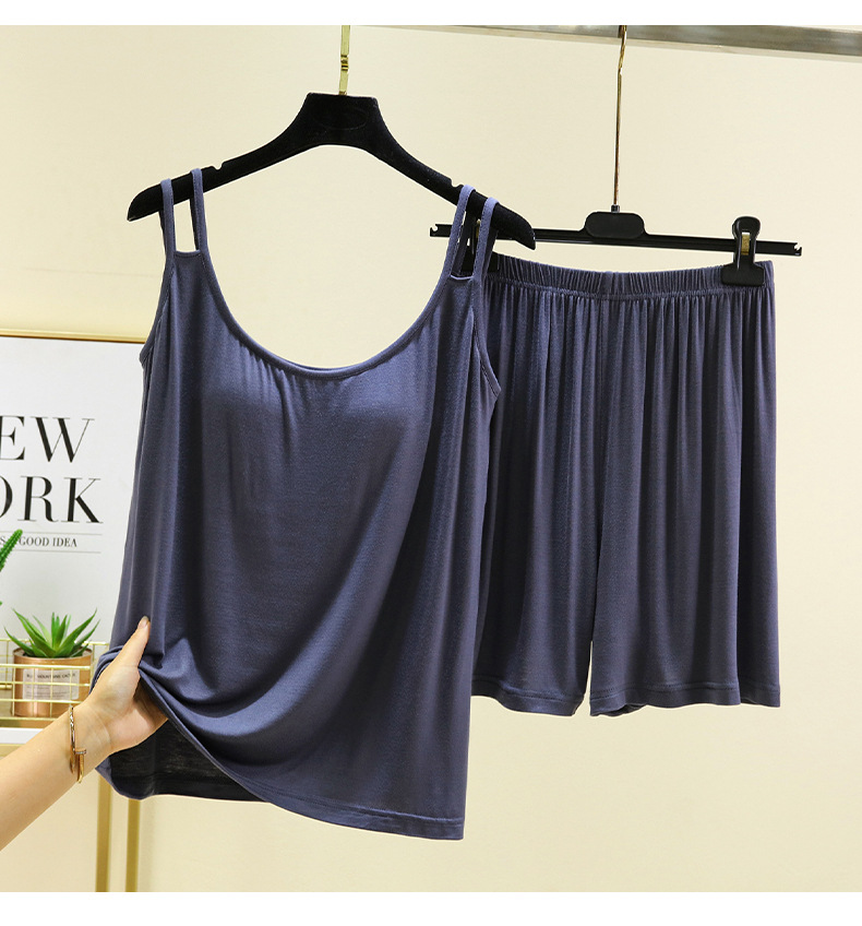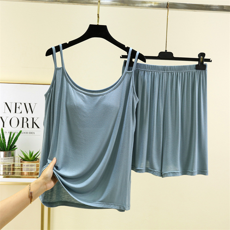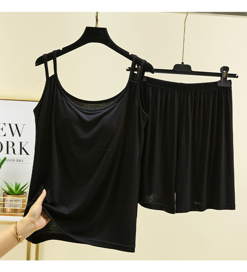 莫代尔带胸垫吊带短裤家居服女薄款套装夏季可外穿睡衣睡裤两件套