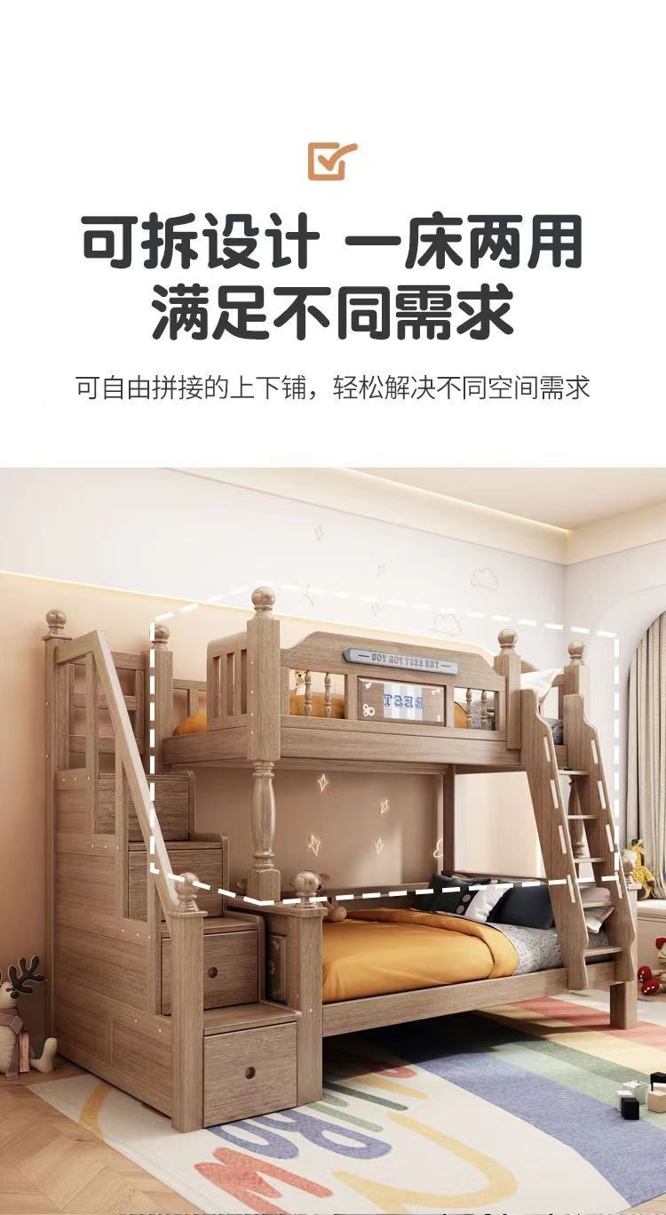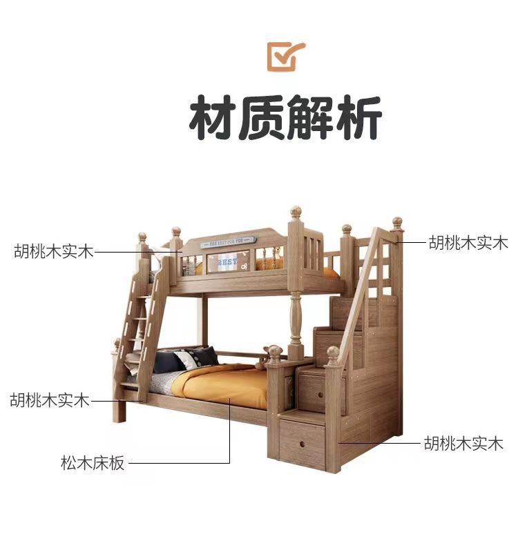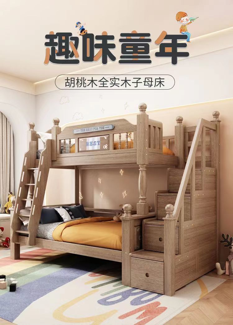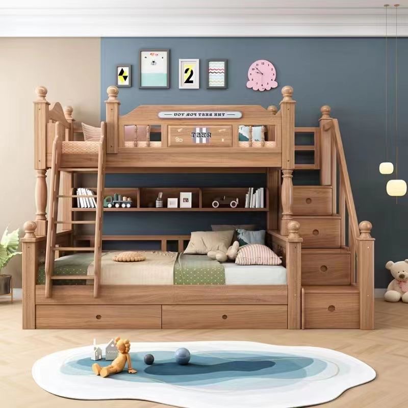 호두나무 이층침대 어린이용 이층침대 남자아이용 이층침대 이층침대 책상 포함
