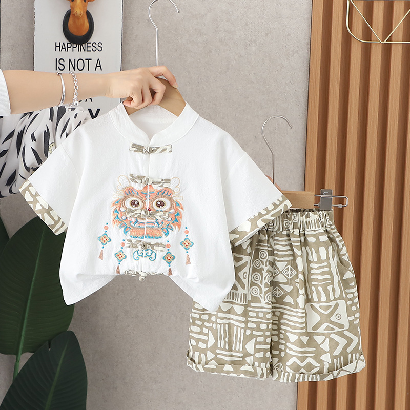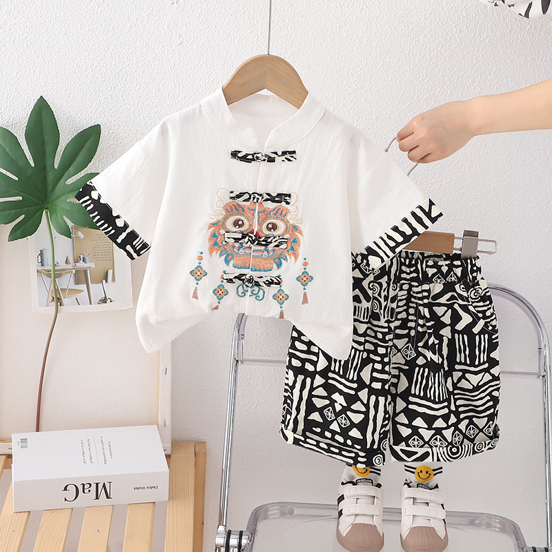 소년 여름 옷 반팔 세트 2024 새로운 유행 아기 여름 옷 유행 어린이 유행 잘 생긴 투피스 세트스토어 가기