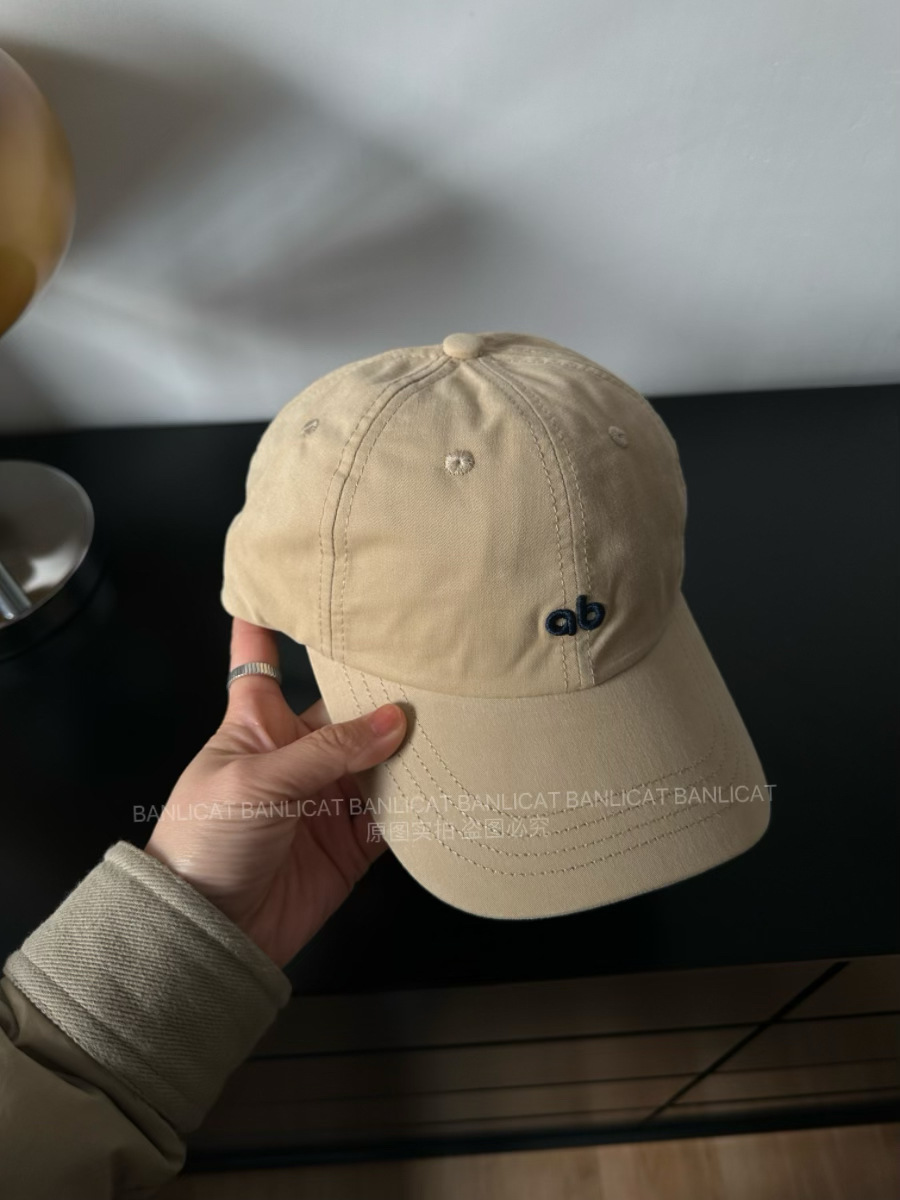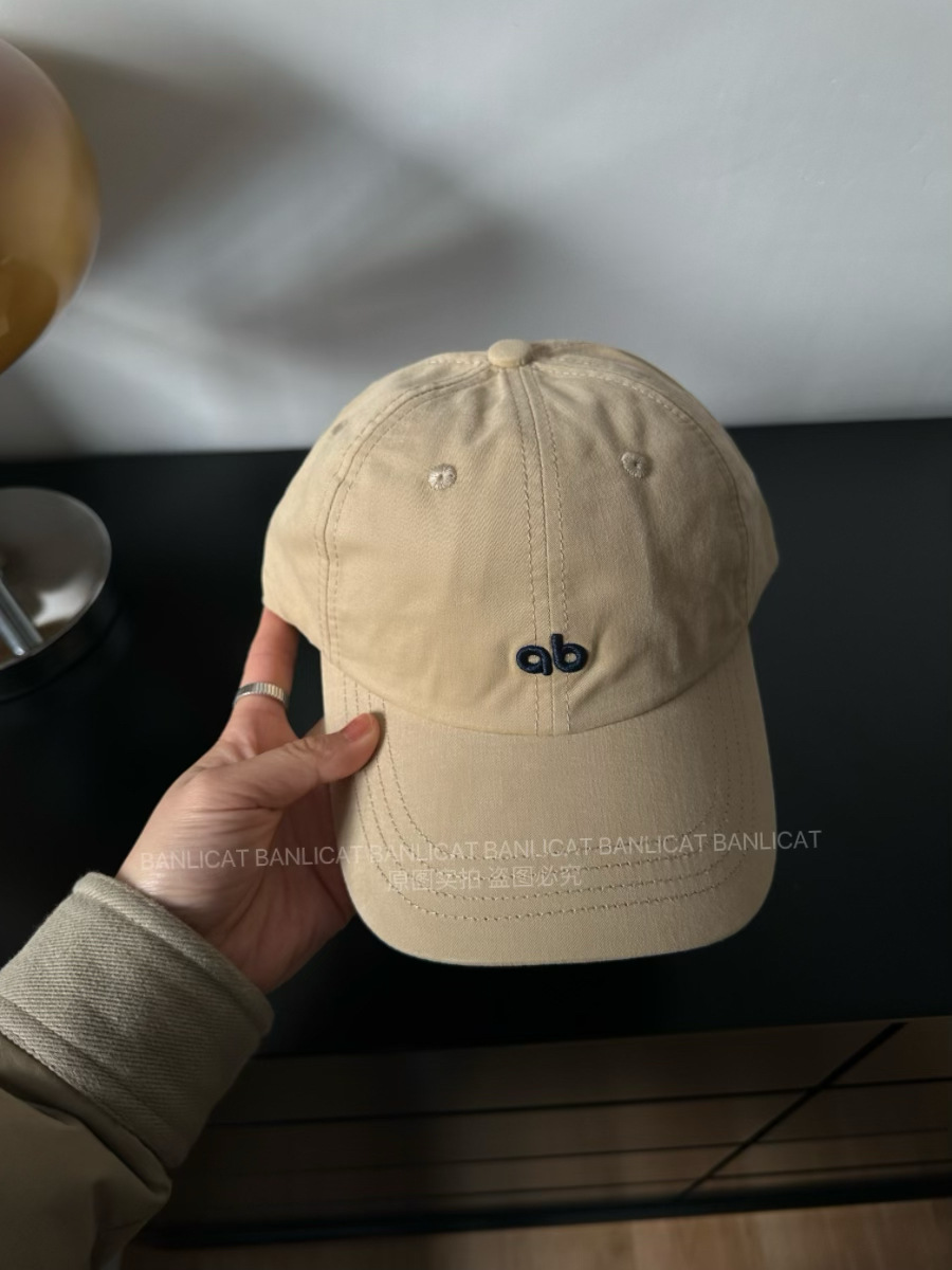 BanliCat 韩版街头潮 简约刺绣灰色小字母棒球帽子男女弯檐鸭舌帽