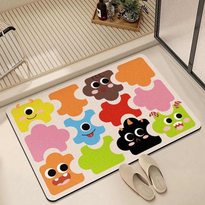 만화 퍼즐 다이아몬드 진흙 바닥 매트 화장실 욕실 흡수성 미끄럼 방지 빠른 건조 발 매트 문 매트 관리스토어 가기