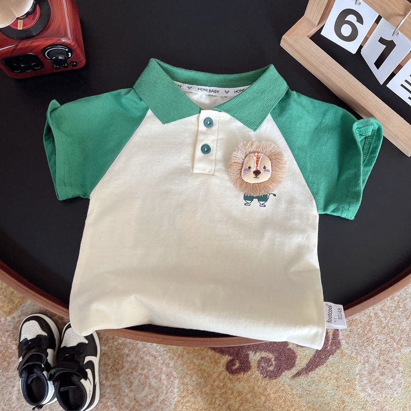남자들의 여름 세트 유행 2024 여름 새로운 소년 아기 잘 생긴 만화 옷 폴로 셔츠 2 피스 세트스토어 가기