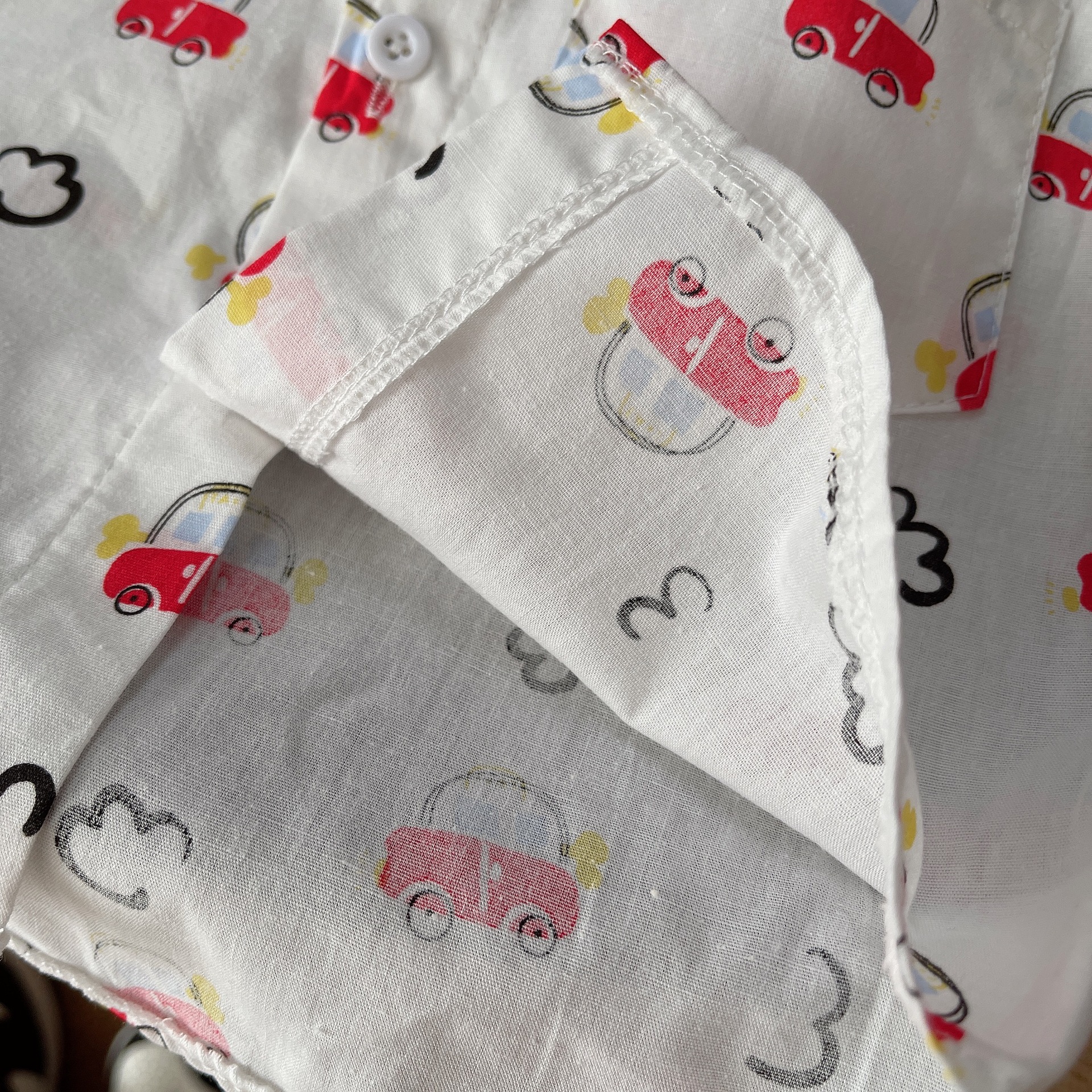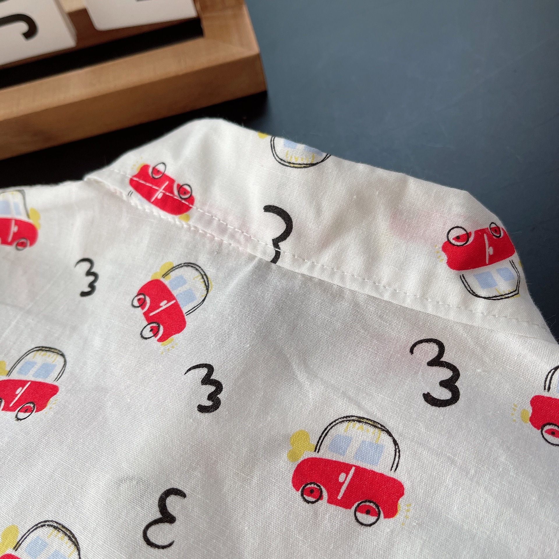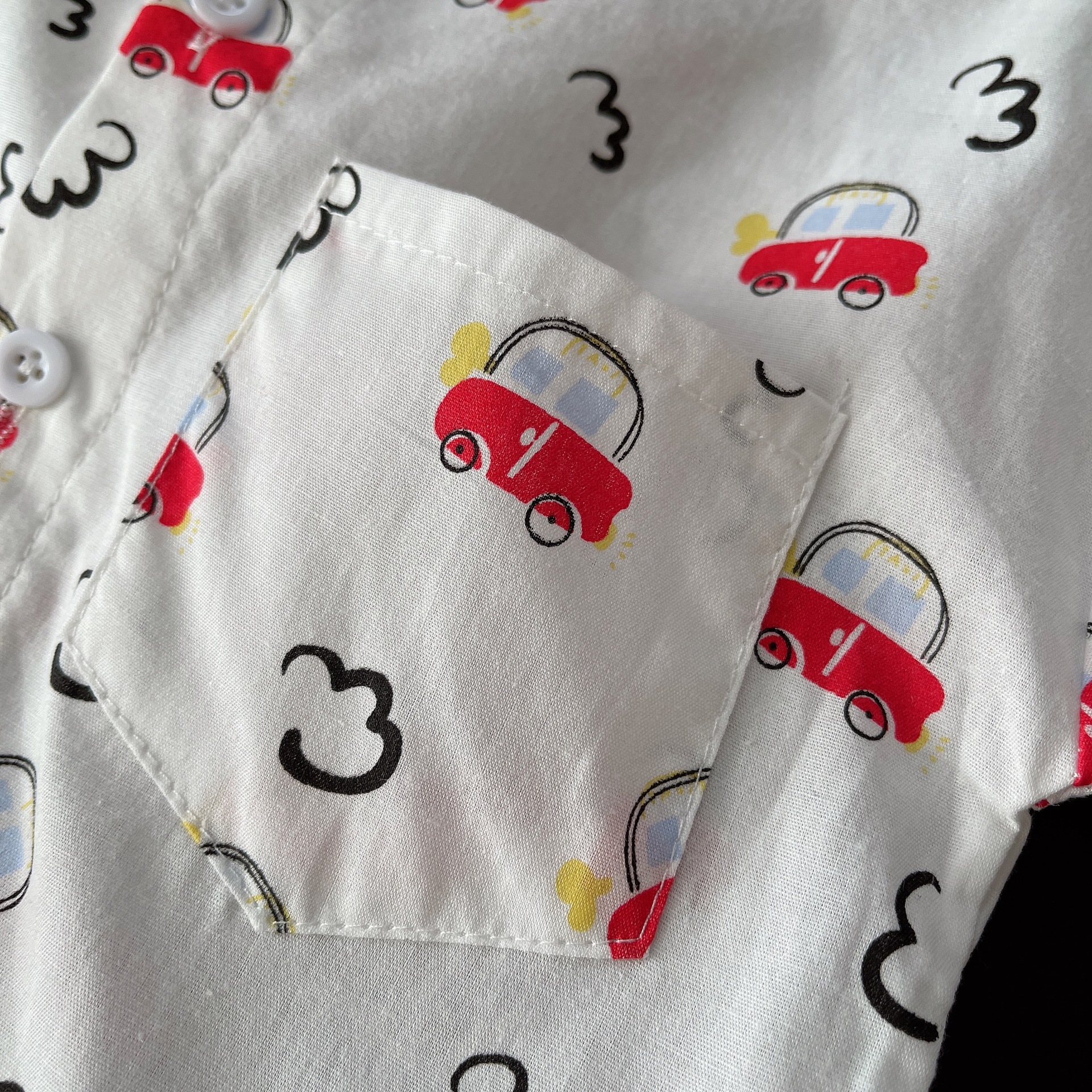 바오 마이 아동복 여름 2024 새로운 남성 보물 프린트 셔츠 투피스 짧은 소매 잘 생긴 어린이 여름 세트 조수