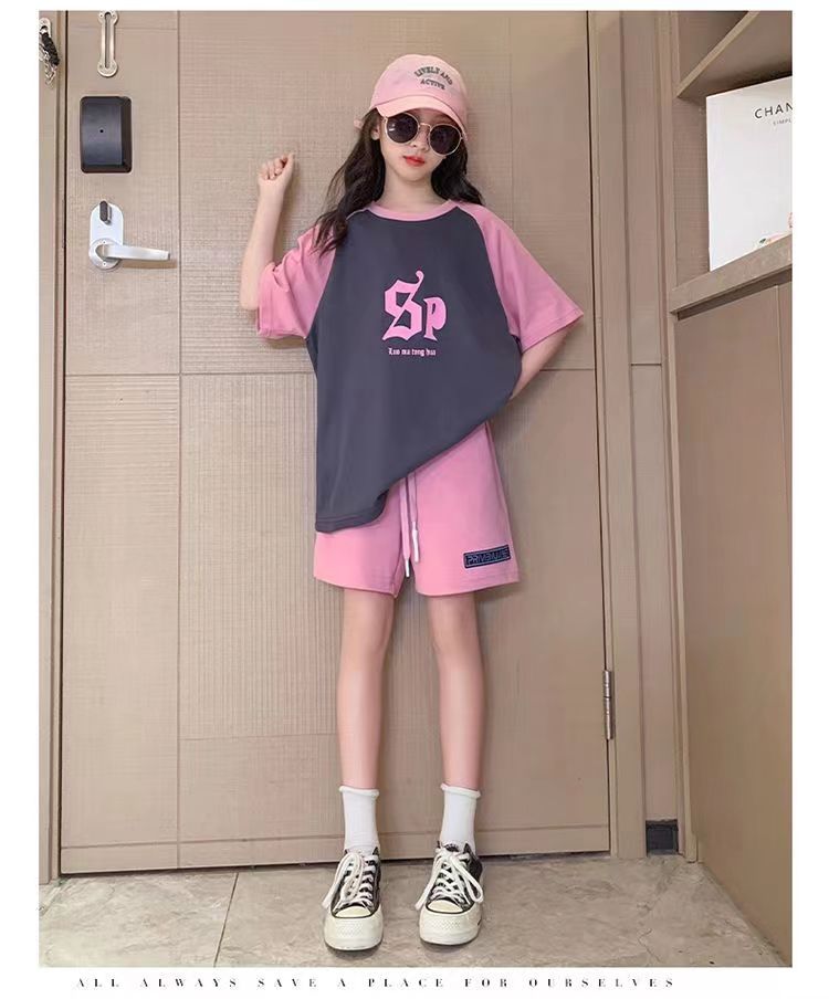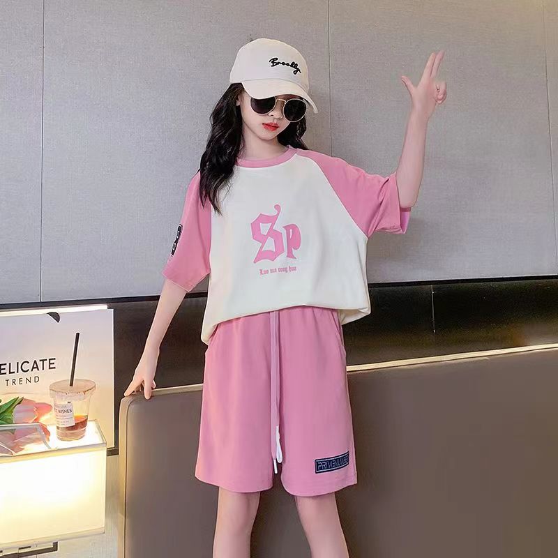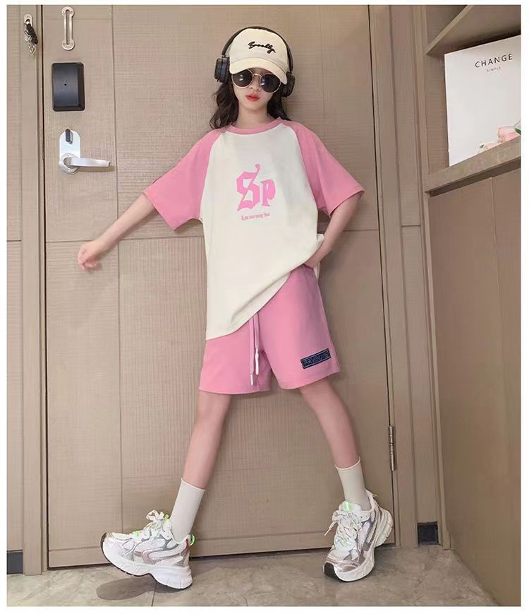 소녀 여름 얇은 세트 소녀 큰 어린이 인터넷-유명한 유행 서양식 거리-튀긴 여름 유행 옷스토어 가기