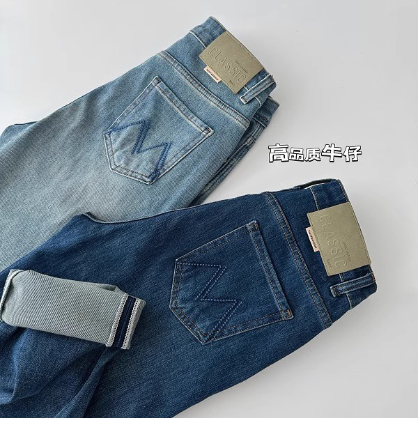 스키니 4 면 바게트 청바지! 2024 년 여름 올 매치 하이 웨이스트 캐주얼 하렘 바지 스트레이트 크롭 바지