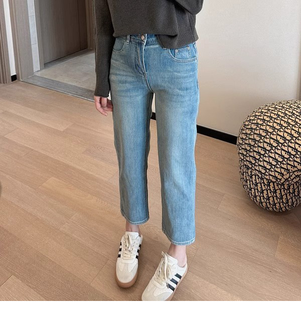 스키니 4 면 바게트 청바지! 2024 년 여름 올 매치 하이 웨이스트 캐주얼 하렘 바지 스트레이트 크롭 바지스토어 가기
