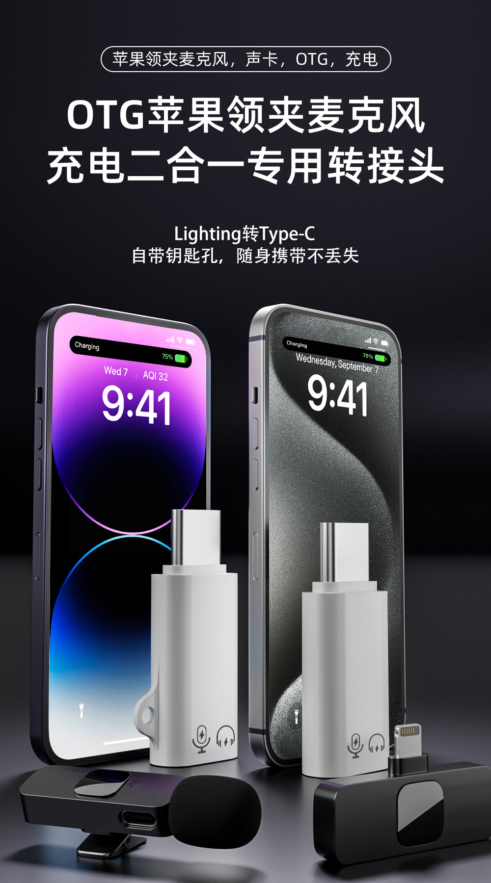 애플 여성 typec 남성 otg 어댑터 조명 인터페이스 마이크 애플 오디오 어댑터