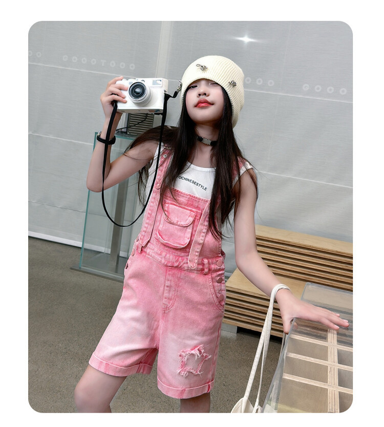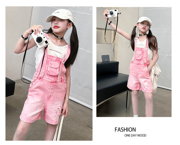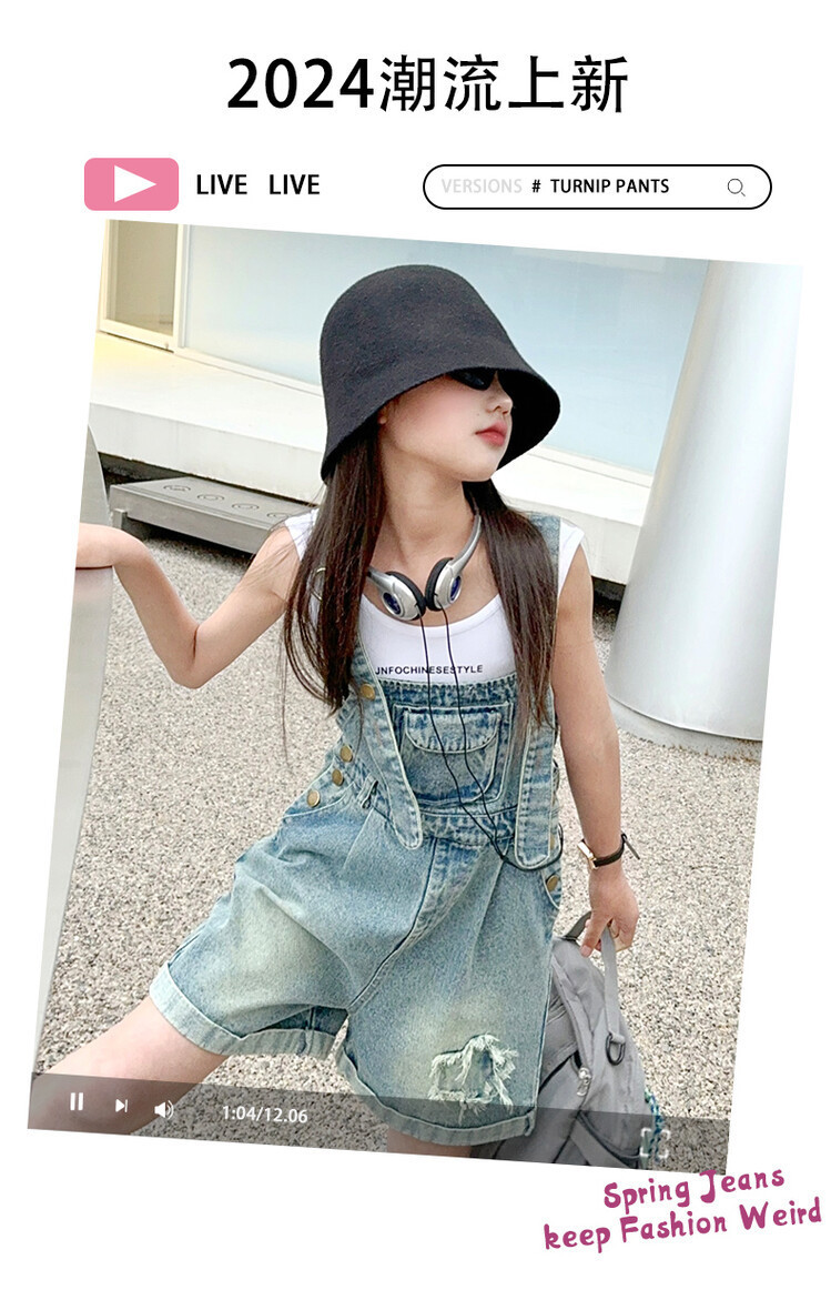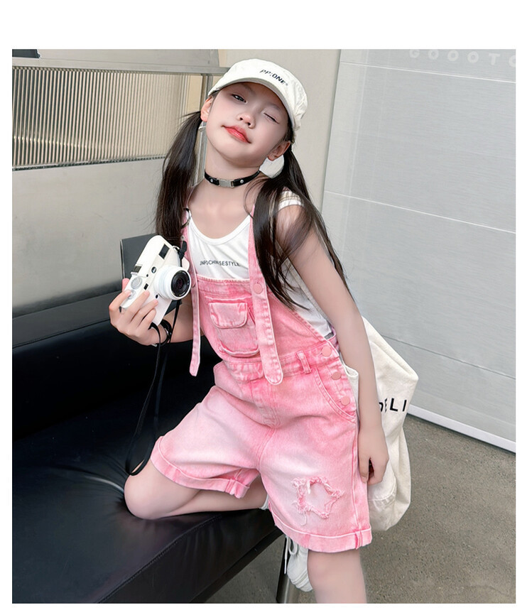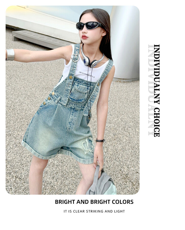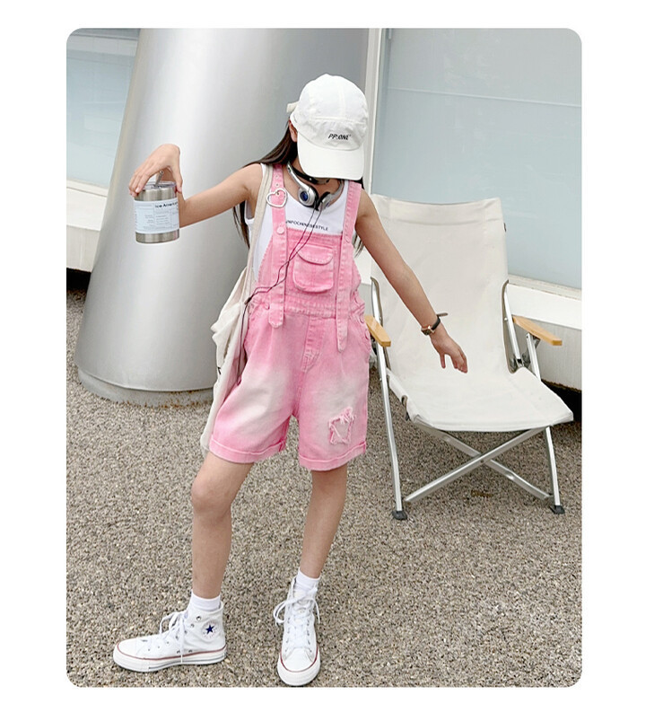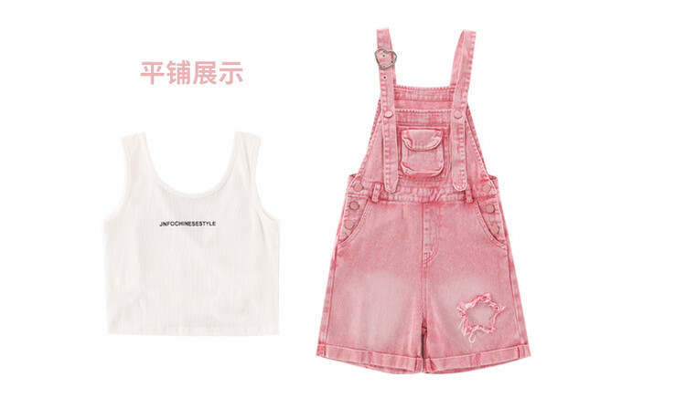 소녀 여름 세트 데님 스트랩 바지 반바지 유행 퀴어 어린이 조끼 민소매 투피스 세트 인터넷 연예인 튀김 거리 대외 무역스토어 가기