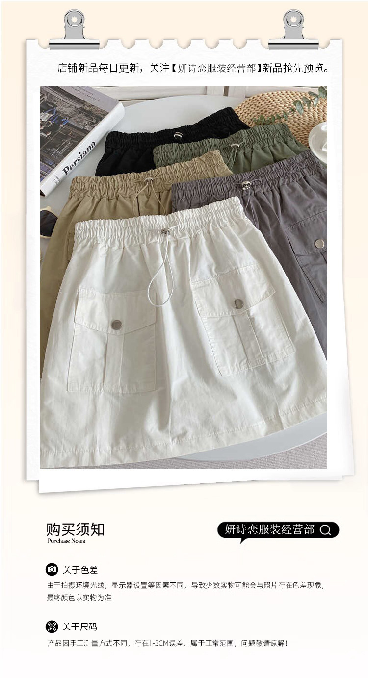 탄성 허리 독특한 포켓 작업복 짧은 치마 여자 2024 여름 캐주얼 올 매치 스커트 여자 안티 러닝 스커트스토어 가기