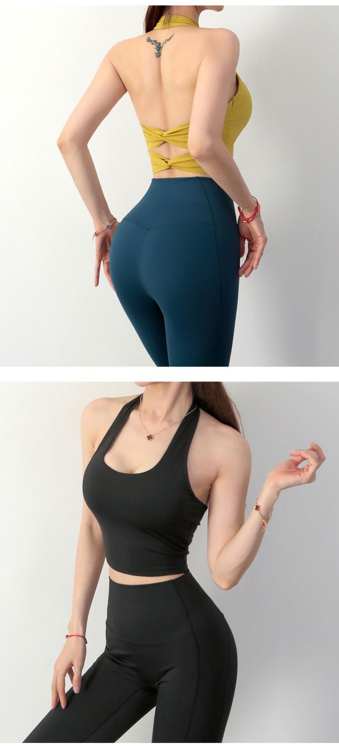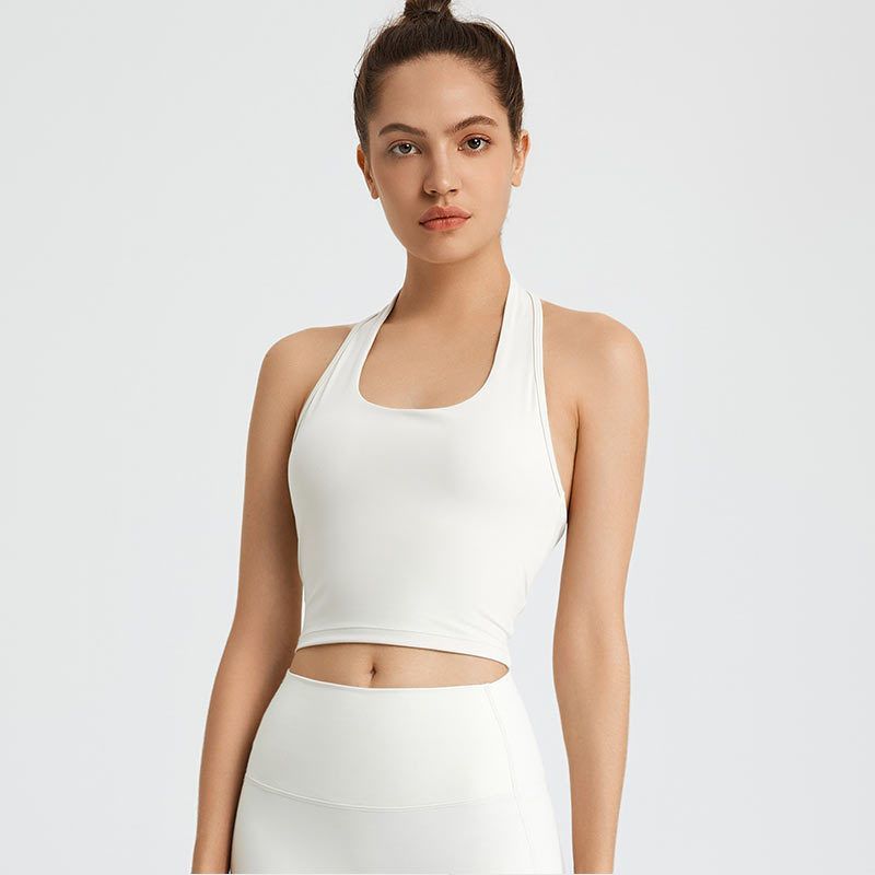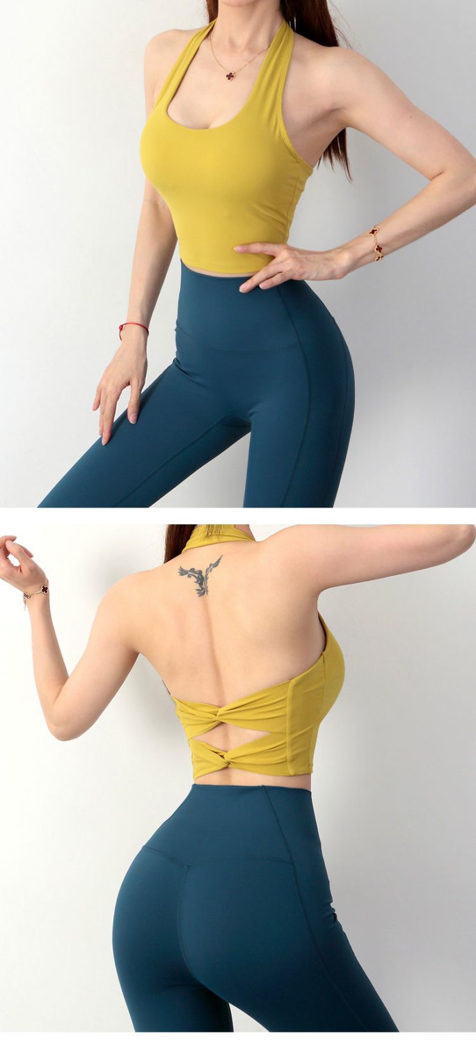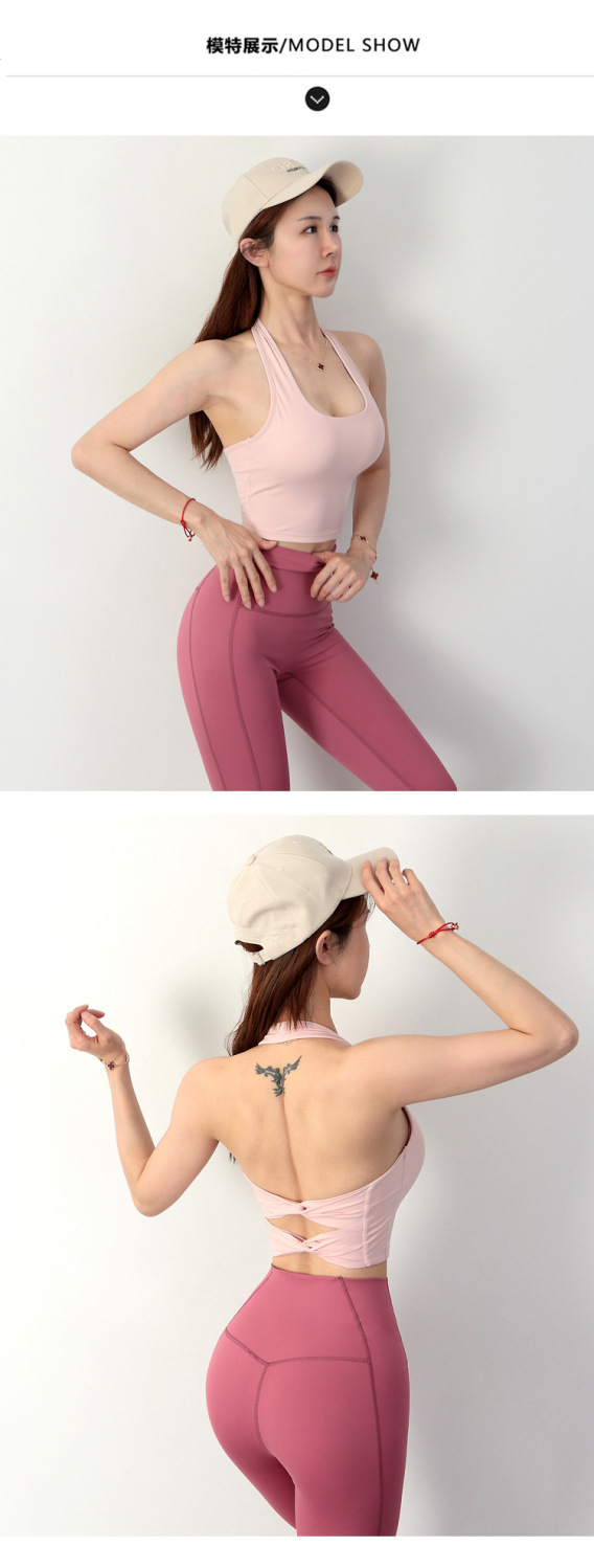 여성 교수형 목 교차 요가 속옷 여성용 분리 가능한 가슴 패드 타이트 스포츠 브래지어 피트니스 스포츠 탑