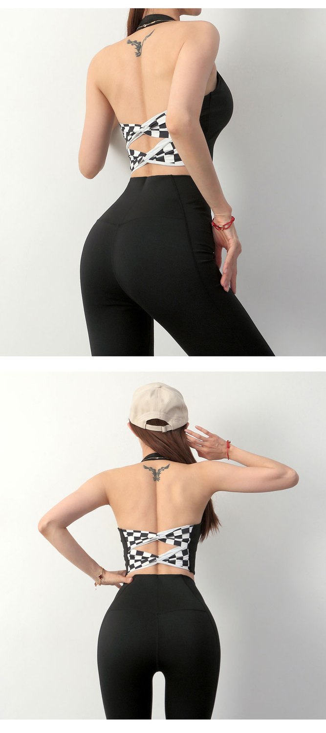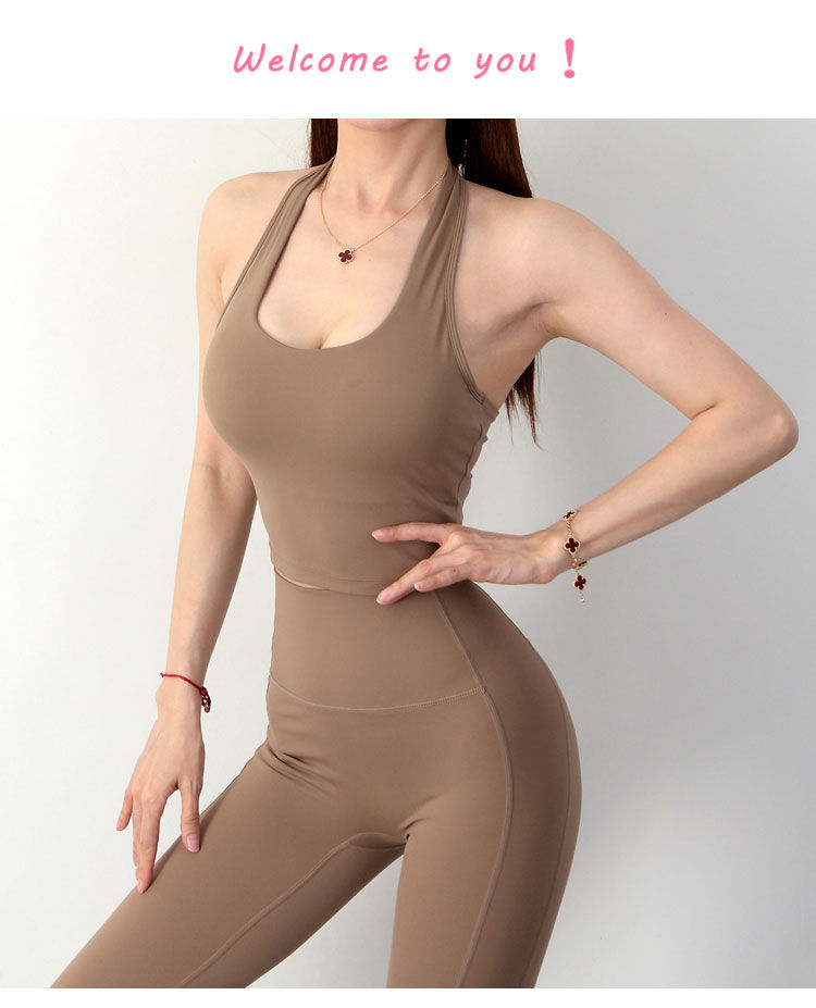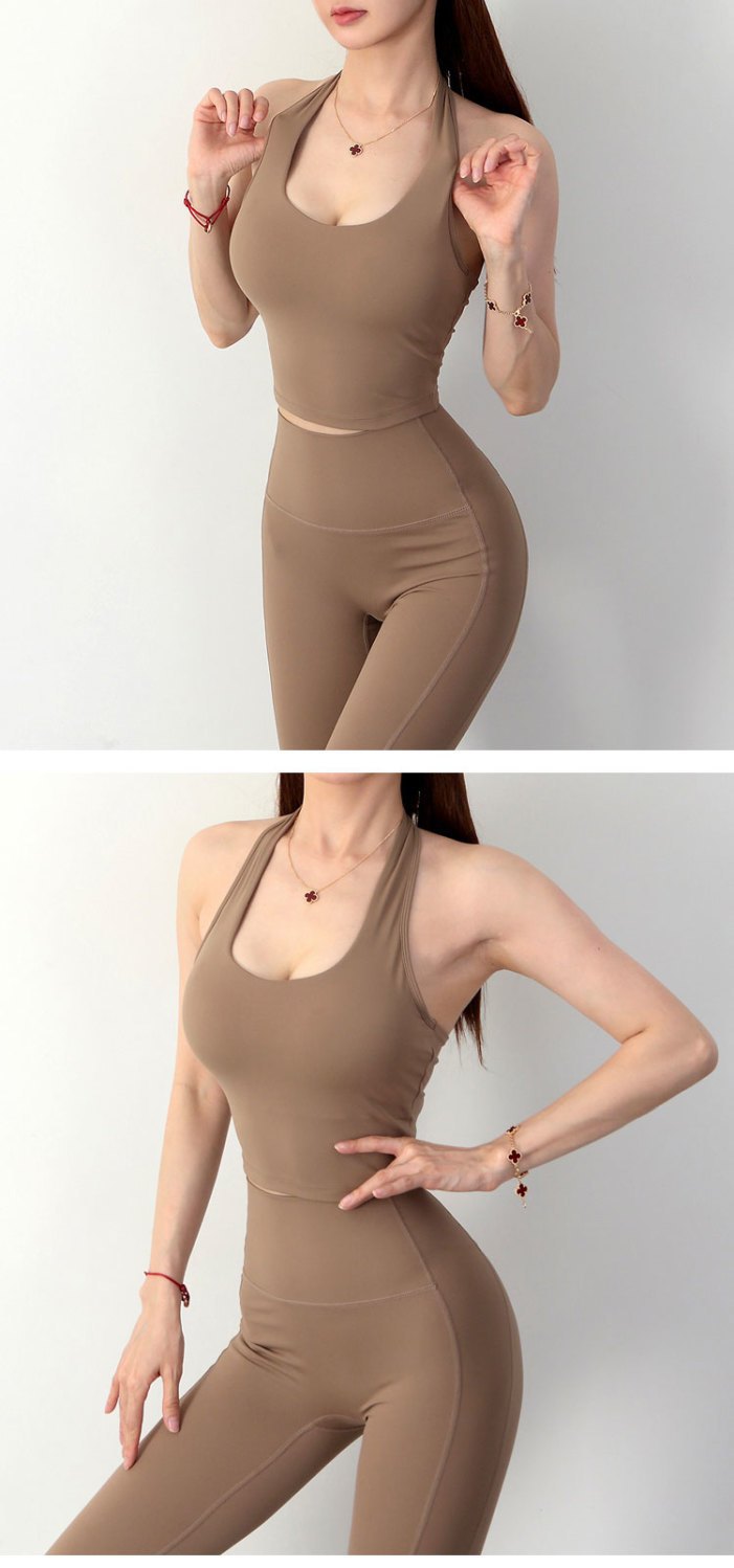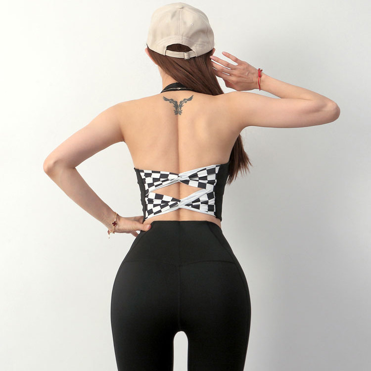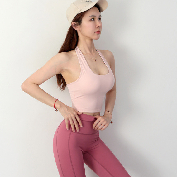 여성 교수형 목 교차 요가 속옷 여성용 분리 가능한 가슴 패드 타이트 스포츠 브래지어 피트니스 스포츠 탑